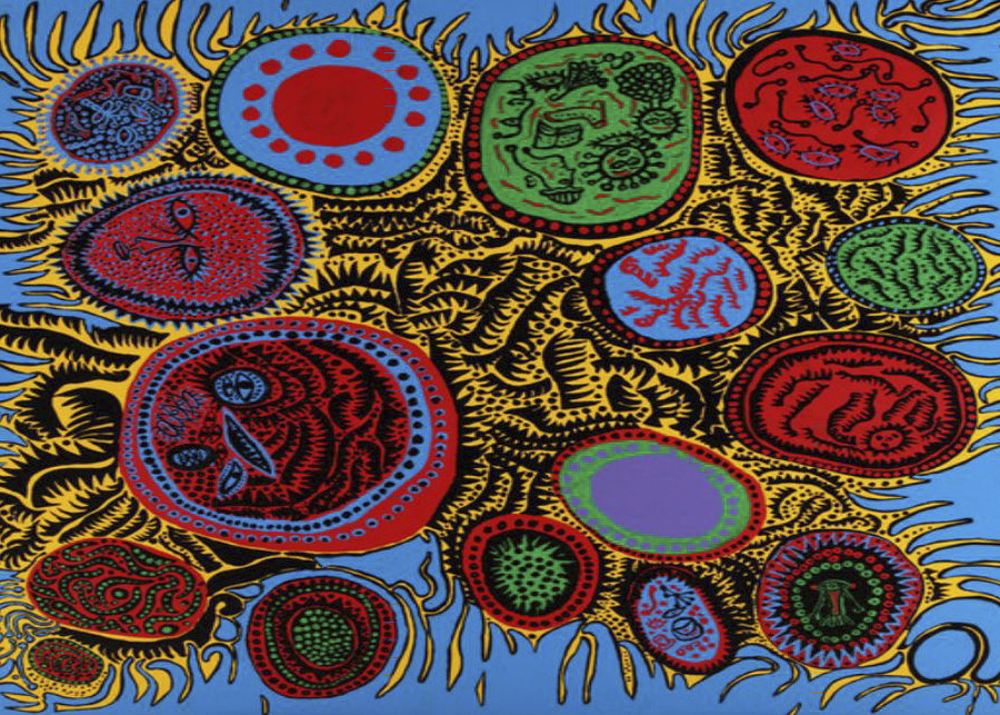 De allí surge por primera vez el término Self Obliteration utilizado por Kusama para describir su proceso Si indagamos en medicina el término obliterar alude a suturar, cerrar. También se puede interpretar como anular, tachar, obstruir. En esa primera etapa de su vida sintió que la visualización obsesiva de patrones gráficos la destruía por completo, entonces comenzó a pintarlos. A las 10 años utilizaba los círculos y los puntos para expresar lo que le sucedía mentalmente.
