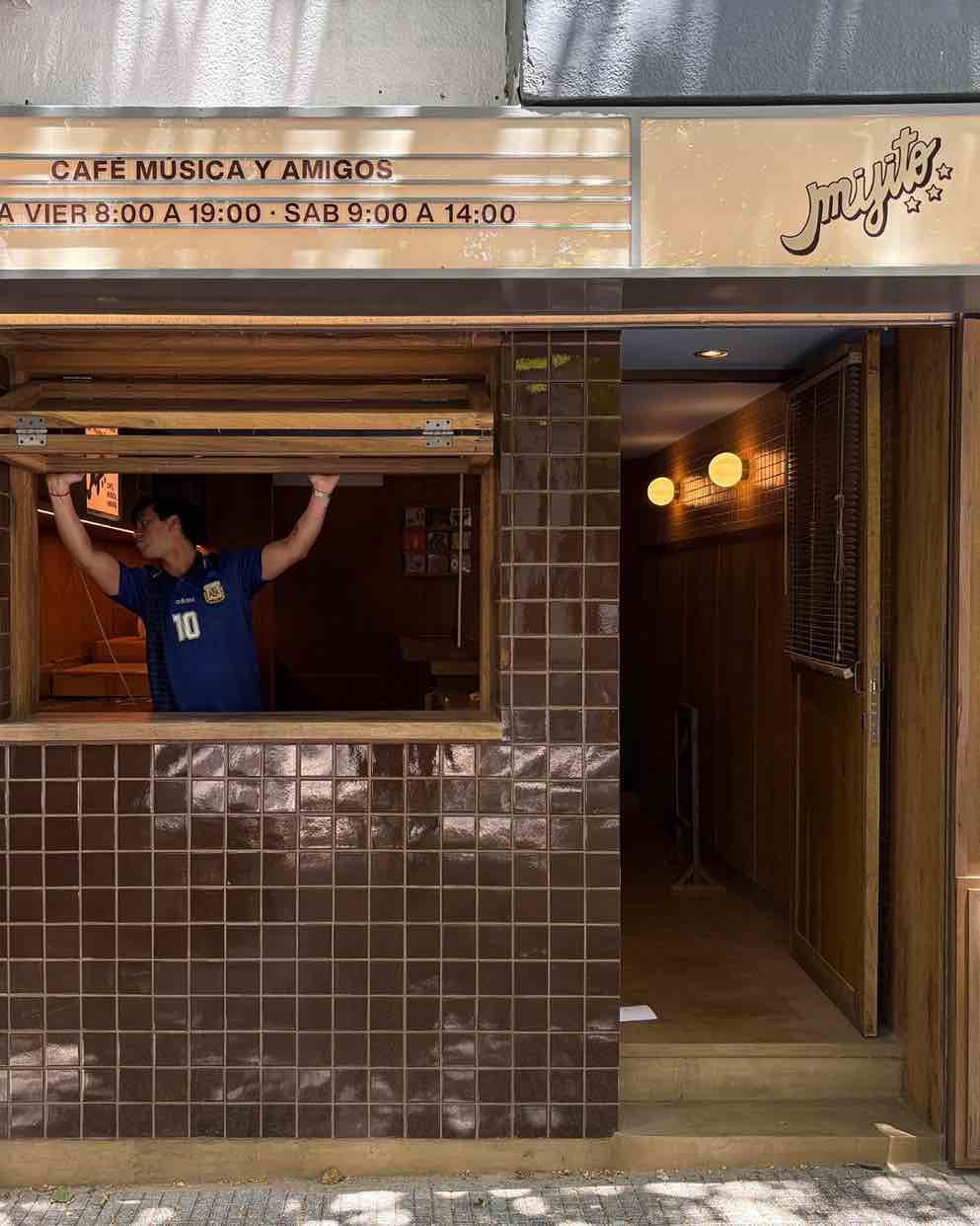 El amor por el filtrado es parte central de su identidad. Cada mes renuevan la selección de granos especiales, invitando tostadores de todo el país para mostrar qué está pasando en la escena cafetera argentina. En espressos trabajan con Aconcagua Coffee Roasters, apostando al producto local y a la calidad constante. La experiencia se completa con una curada selección de discos en formato CD y un equipo de reproducción de época, en un guiño a los bares japoneses donde la música dialoga con lo gastronómico. Una pequeña barra interna invita a vivir el momento de forma más íntima, más “mijito”.