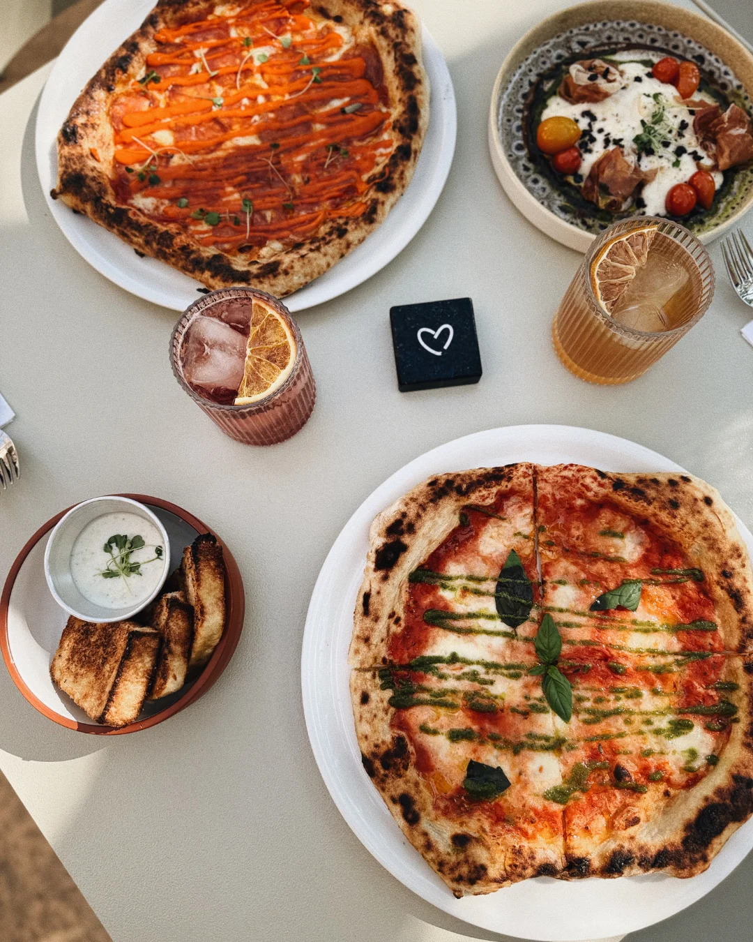 Desde las pizzas estilo napolitanas, las piadinas, los panes chatos y los productos de panadería -como laminados, chipá, tostadas- son elaborados a base de esta masa de alta hidratación y fermentación larga. El café de especialidad, los blend de tés y los jugos naturales son el acompañamiento ideal.