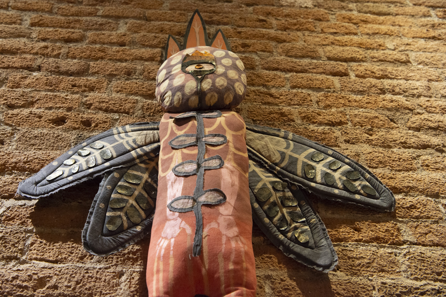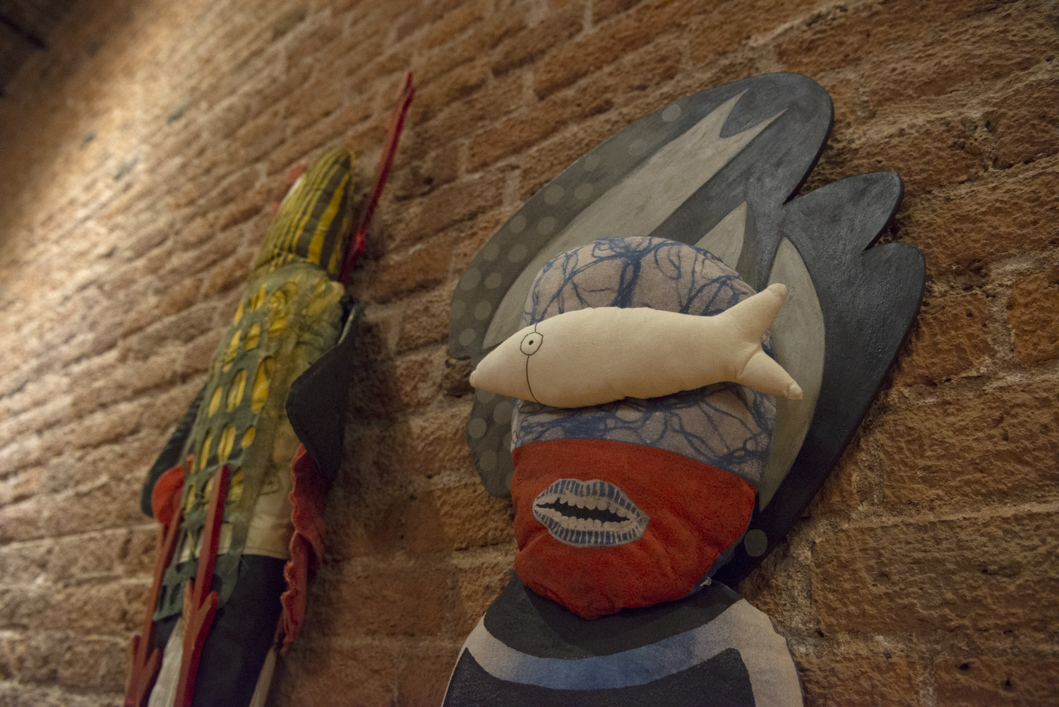 Unas veinticinco esculturas blandas le dan vida la sala de la bodega de Godoy Cruz, situada en un edificio histórico y único, que acoge expresiones de tango, vino y artes visuales. Si los textiles son en esta oportunidad el material primario, otros elementos intervienen en el proceso y conforman el resultado final: maderas, metales, cueros, papeles, masillas, lanas, pinturas y bordados. Asimismo, animales, figuras antropomorfas, bichos con alas y humanoides cobran cuerpo para revelar un estado indefinido del ser y sus pluralidades. En algunos casos, además, aparece una especie de casa o escudo protector artificioso.