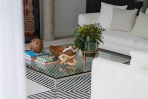 En el taller hay puras líneas en formas geométricas, colores vivos, colores flúor y la sensación de movimiento constante. «Es un lugarcito con una luz natural muy especial. Por la mañana me da una nitidez increíble para pintar las líneas perfectas», comparte la pintora que nació en una familia de artistas.