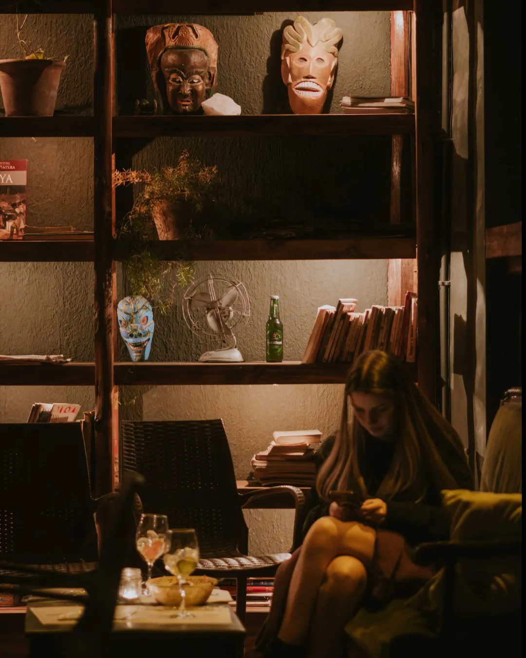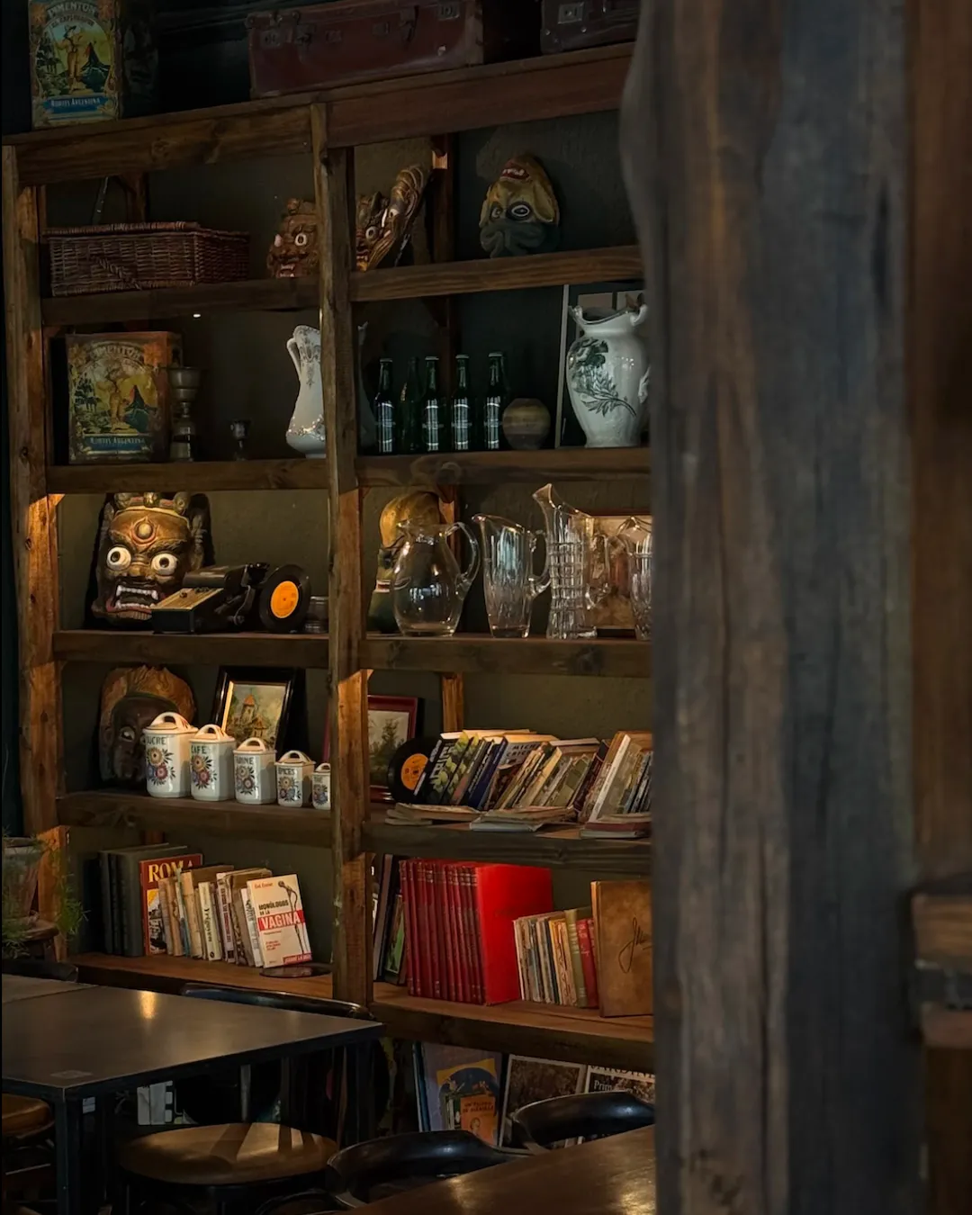 Entre mesas rústicas y vegetación, hay estanterías con libros que podés hojear libremente durante tu visita. Desde novelas clásicas hasta historietas y enciclopedias, el plan es leer por el placer de hacerlo, y devolver el libro al terminar. Ya sea que vayas por un capuchino con croissant o por su carta de coctelería y appetizers, la premisa es clara: lo bueno no tiene por qué ser complicado.