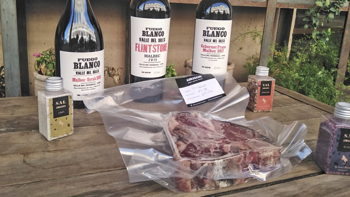 El distintivo del restaurante de la bodega, comandado por el Chef Lucas Rivera, es la carne madurada en seco, proceso al que se someten algunos de los mejores cortes de carne vacuna para así potenciar su sabor, color, terneza, textura y jugosidad.