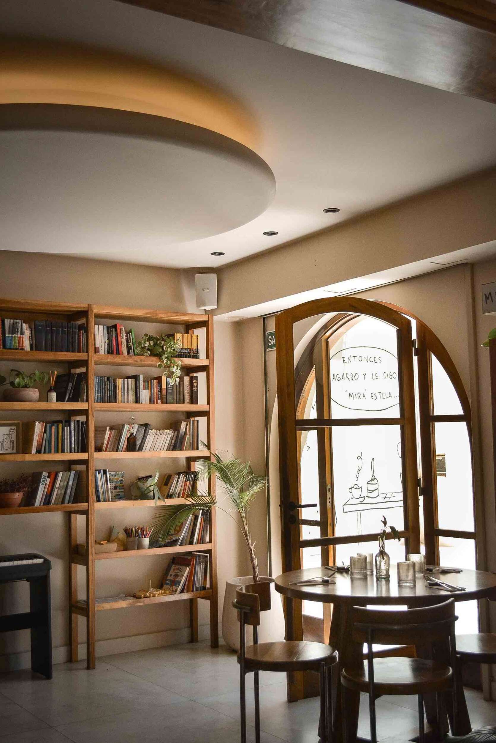 Lobo Pollito nació de un viaje y de un sueño: el de crear un café literario íntimo, chiquito, lleno de libros y con un piano empotrado dentro del propio mueble. Esa imagen que Santi, su esposa y su cuñado imaginaron años atrás, finalmente tomó forma en el espacio donde funcionaba Cora, en Olascoaga 829. La premisa es sencilla, pero desafiante: que la gente se vaya mejor de lo que entró, un poco más estimulada por el arte, por un libro abierto al azar o por elección, por una conversación que se estira.