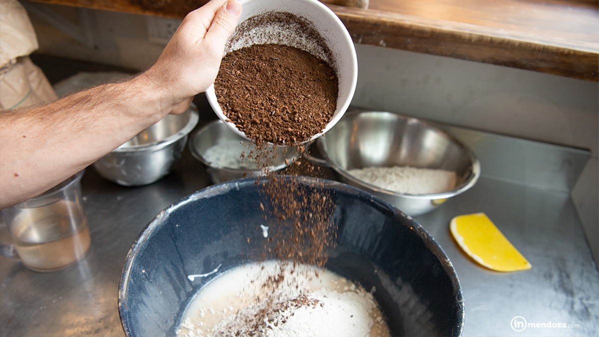 «Buscábamos hacer un pan oscuro tipo europeo, como el pan Pumpernickel, y tras probar diferentes harinas y maltas quedamos en esta, la de chocolate, que es bien tostada y nos convenció el color y sabor», reveló el panadero de Bröd que trabaja con leudados lentos y a temperaturas bajas.