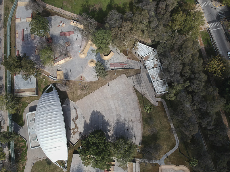 Mariana Juri, Secretaría de Cultura, Turismo y Desarrollo Económico, nos cuenta: «se integró un espacio público con un espacio cultural, nos pareció sumamente interesante sumar a la remodelación del Parque O´Higgins, la recuperación del Teatro Gabriela Mistral que hoy tiene nuevas características adaptada a los nuevas demandas. Todos esto se integra a un espacio para los jóvenes como es el parque urbano.»