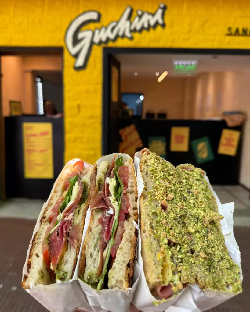 Con el concepto de comida al paso, Guchini está ubicado en el garaje de una casa. Ofrecen 3 tipos de sandwiches: jamón crudo, mortadela y vegetariano con milanesa de berenjena. Una propuesta super simple pero que agota su stock a diario porque simplemente gusta. Para acompañar, ofrecen limonadas o gaseosas.