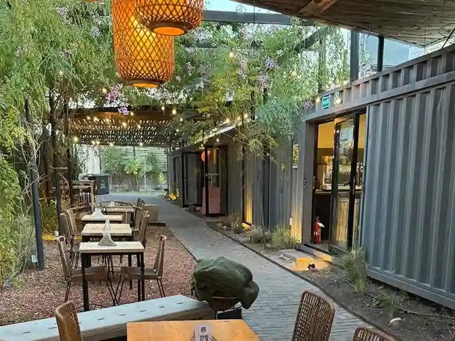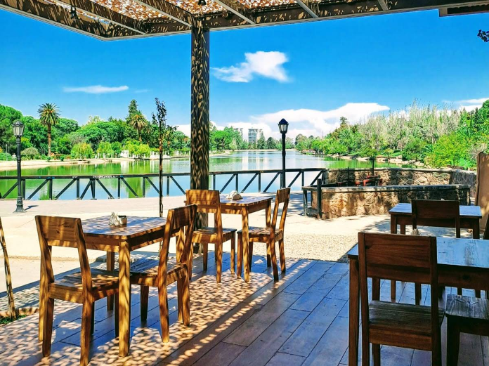 Ubicado justo frente al lago del Parque General San Martín, Palma funciona como un parador contemporáneo pensado para disfrutar del aire libre: mesas relajadas, mucha naturaleza alrededor y esa sensación de estar en una especie de “playita mendocina”. La inspiración del proyecto también dialoga con el espíritu original del parque diseñado por el paisajista francés…