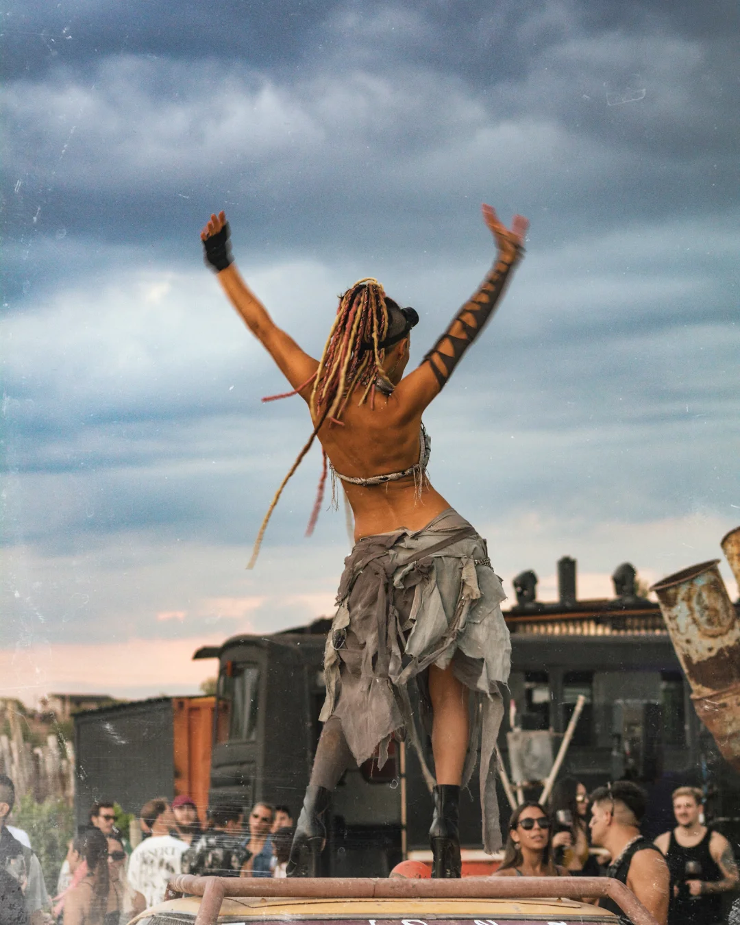 Ahora bien, la gran pregunta es: ¿cómo vestirse para un fin del mundo? Hay solo una condición: con lo que se pueda encontrar en un mundo devastado, donde todo es «basura» que se convierte en atuendos únicos para continuar la travesía por este desierto distópico.