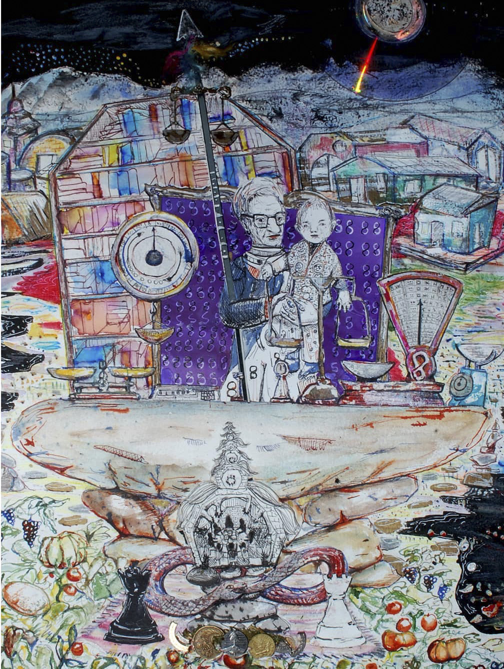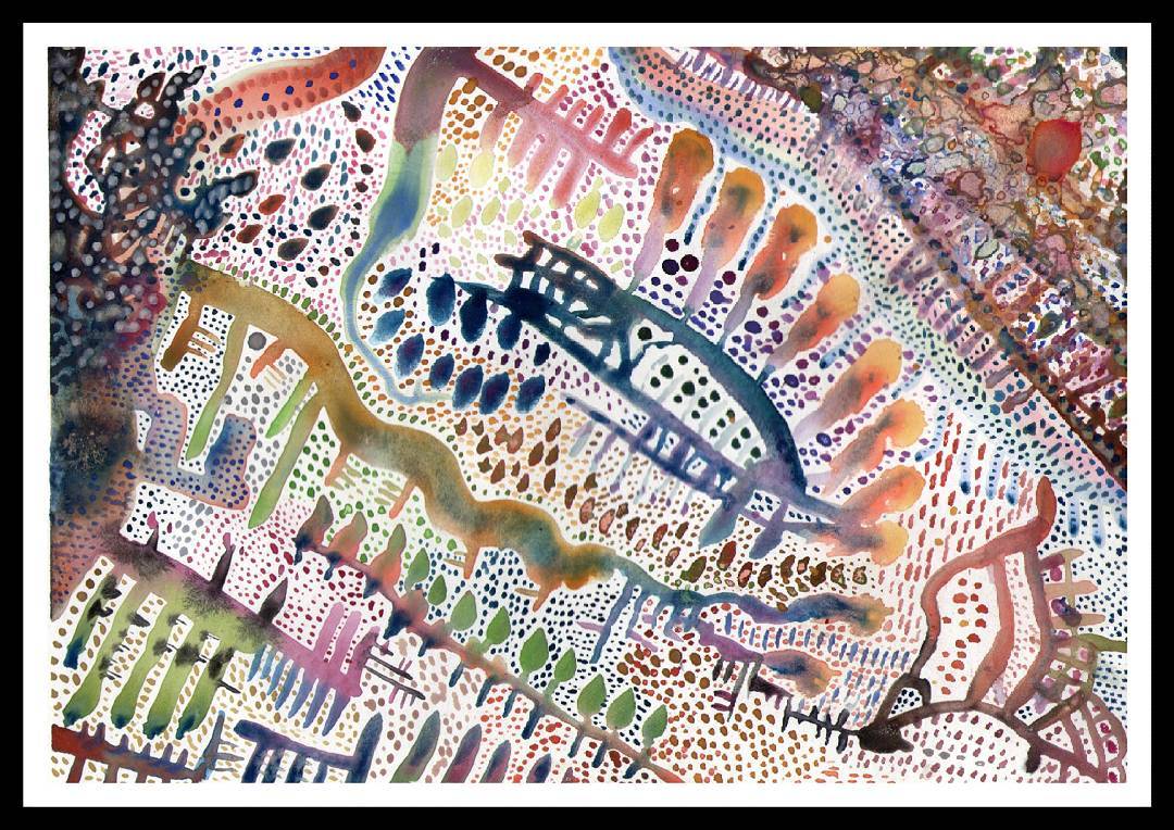 En sus acuarelas abstractas persiste la combinación de colores suaves, y sus dibujos con trazo negro, hechos con una simple birome, son tan complejos como profundos, uno puede analizarlos durante días y días.