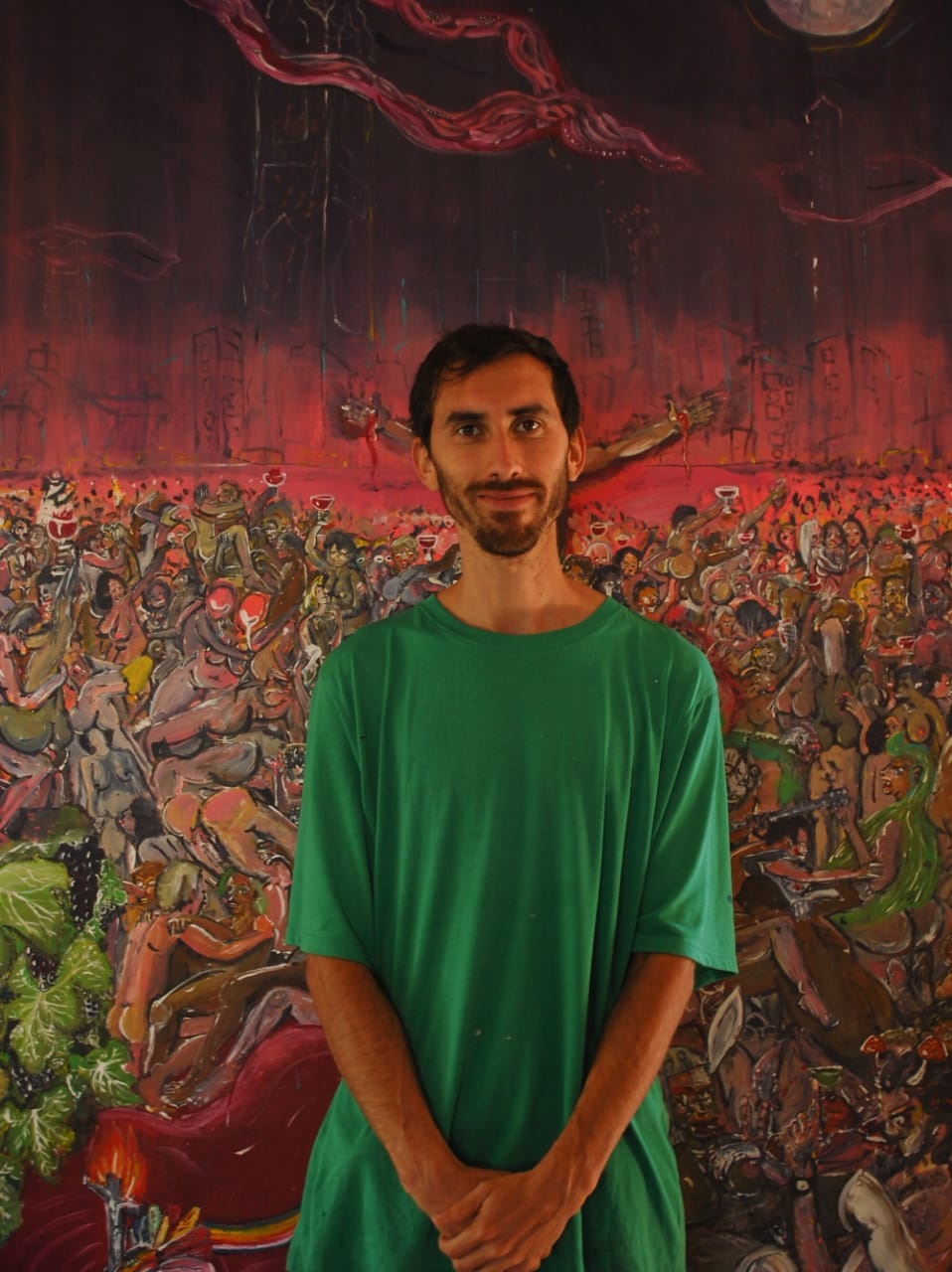 «Todo tiene que ver con todo», afirma este artista radicado en El Challao, lejos del ruido, donde tiene su taller y donde se dedica a pintar y a estudiar. Luego de aprender a dibujar a la perfección y de experimentar con lo abstracto en todas sus formas –incluida la química con fuego-, encontró su estilo en una hipnótica mezcla entre los colores de Marc Chagall, el surrealismo de Dalí y el simbolismo latinoamericano.