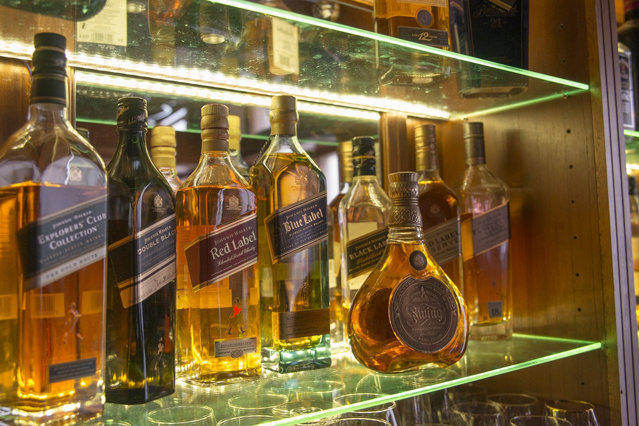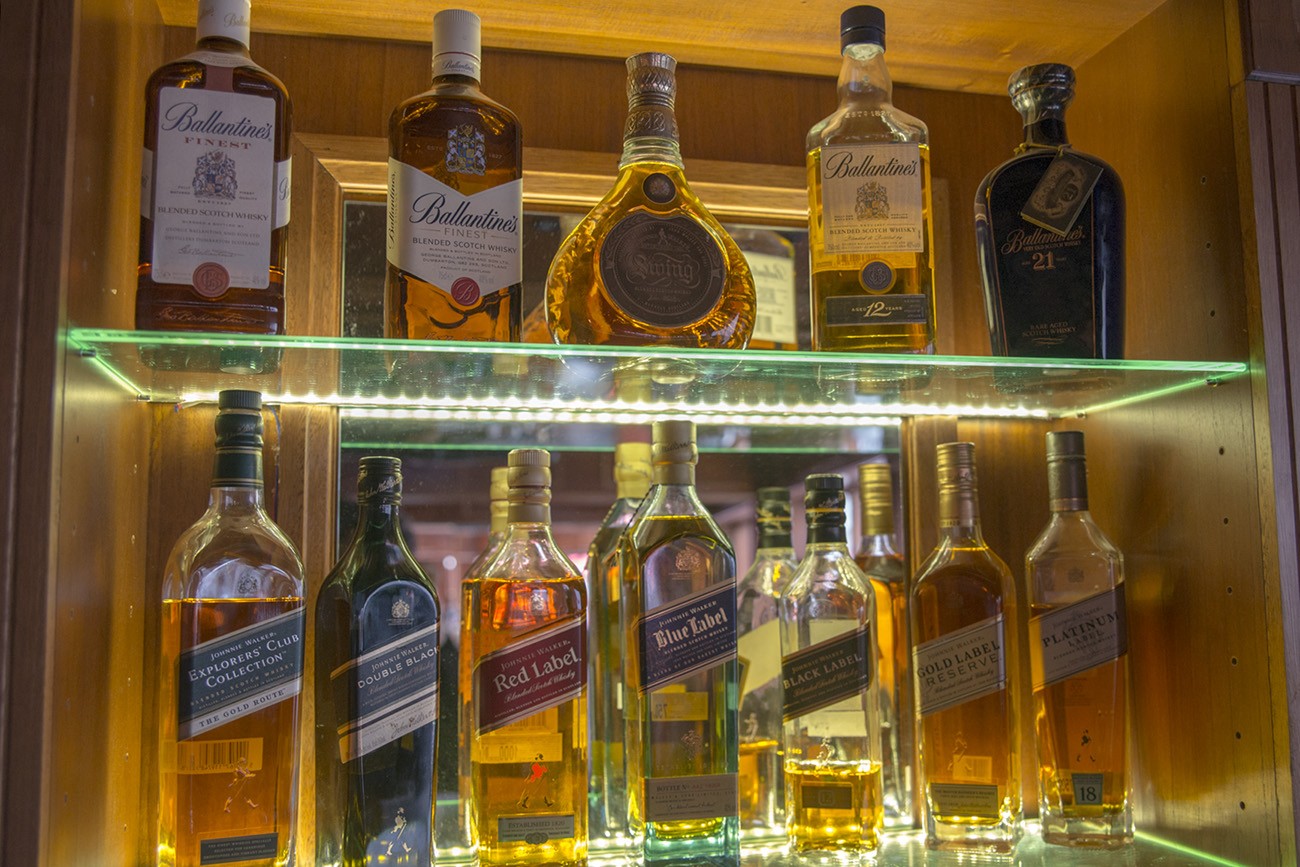 En materia de whiskies el bar ofrece importados que difícilmente se consigan en otro lugar de Mendoza, etiquetas de toda la familia Johnny Walker, una joyita como la Swing (botella diseñada para bambolearse con el vaivén de los barcos), Ballantines, los exquisitos bourbon de Jack Daniels, entre ellos el Gentelman Jack, y la marca Jim Beam.