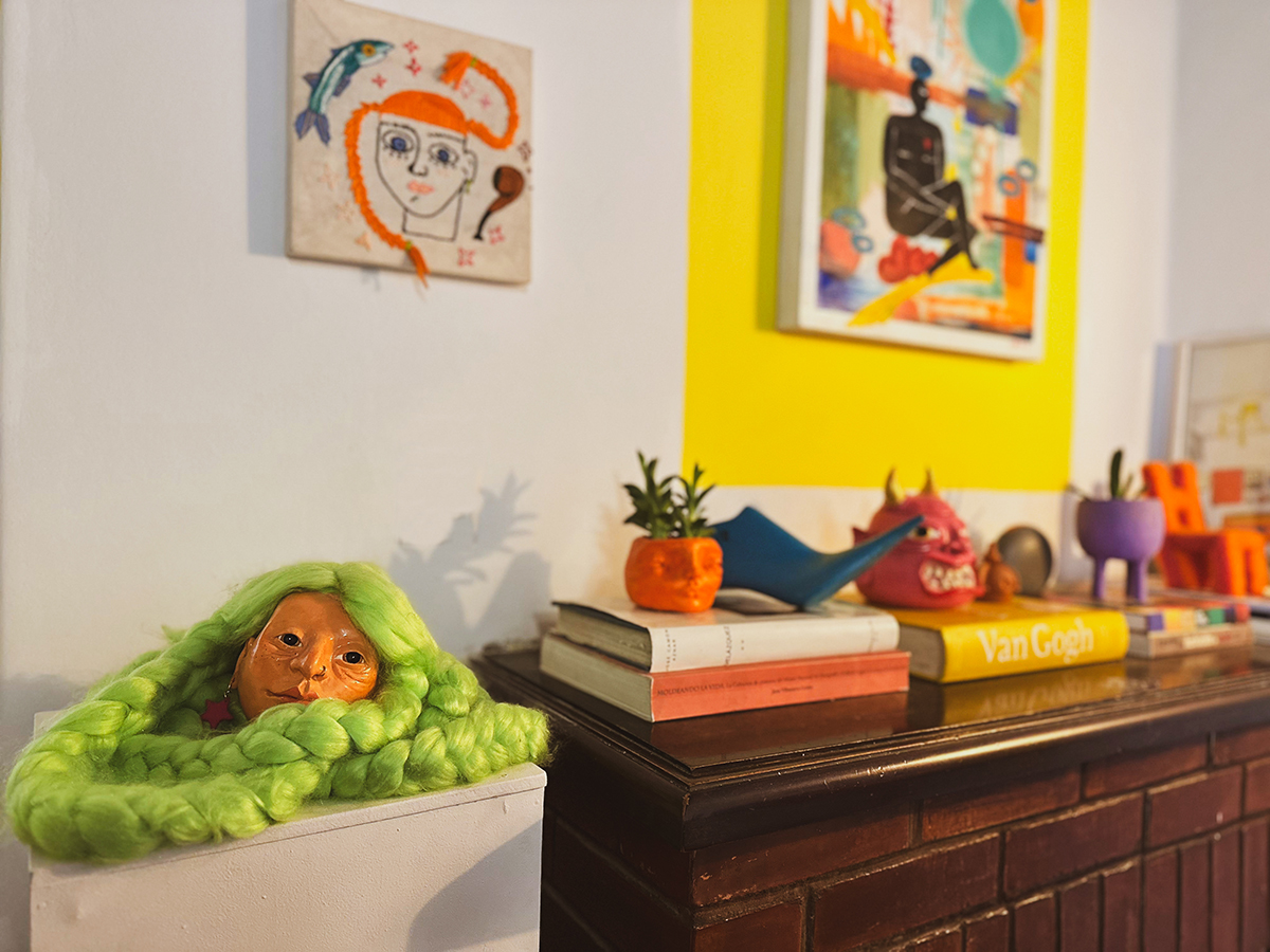 Mientras la escultora me contaba su bagaje era imposible posar la mirada solo en ella: paredes pintadas con líneas que recorren el espacio, incontables objetos en repisas, sobre la estufa hogar, sobre libros. Esculturas arriba de otras esculturas, rollos de lienzos en un rincón que contienen pinturas de años atrás, atriles con pinturas que con sus formas y colores atrapan. Marta inspira.