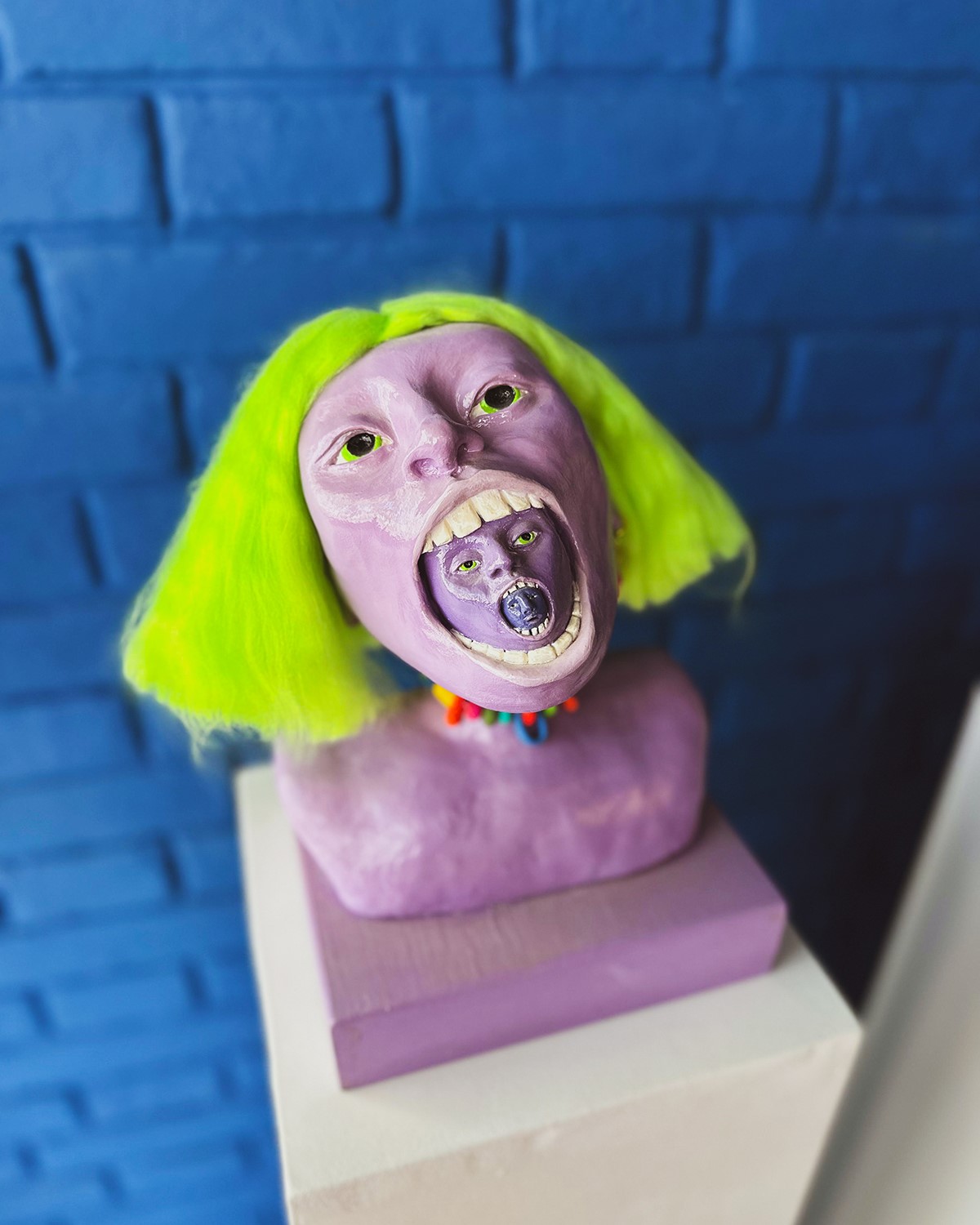 El barro le permitió a Marta Argerich llevar todas sus ideas, formas y colores a ocupar un espacio en el mundo real. “Los demonios de mil colores brillantes y los corazones lagrimeando representan mis emociones, es una forma de sacarlos de dentro mío”