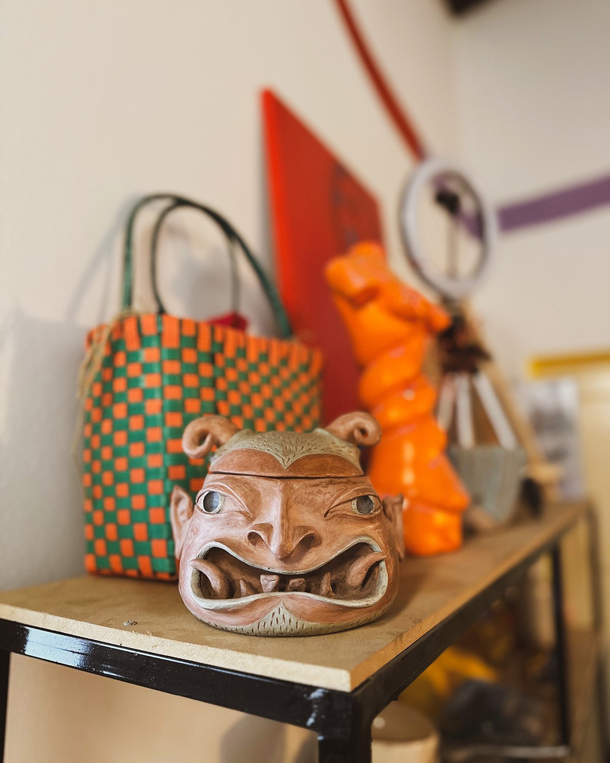Miré alrededor y descubrí mil objetos, esculturas de demonios y de corazones, vasijas de tipo “precolombinas” de arcilla colorada y formas redondeadas de colores saturados: “No uso pigmentos de cerámica porque no tienen el brillo que mi obra necesita, utilizo acrílico y barniz”, comenta la artista Marta Argerich. Ella sabe exactamente quién es y hacia dónde va aunque la primera pregunta que le hice la dejó pensando…