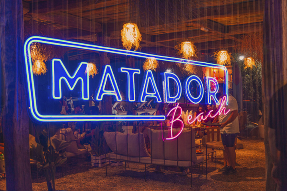 La ambientación de Matador es perfecta. Su barra sobre un murete de piedra tipo gavión (red con piedras) y el porcelanato del fondo simulando agua, con una iluminación que potencia la sensación acuática, promueven la felicidad playera. A eso se suma un paisajismo acorde con palmeras y perfecta arena San Luis.