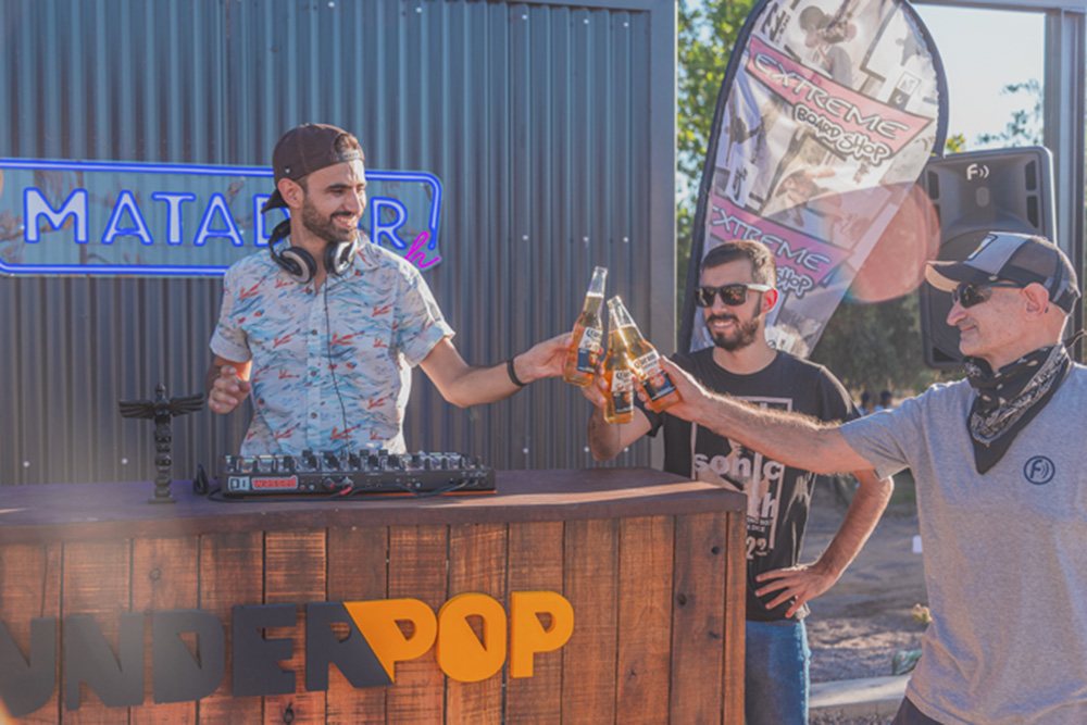 «Primero trasladamos esa sensación onírica que surge cuando uno se pone a pensar en un lugar de playa en México o California –cuenta Diego-. De ahí surge la idea de unir un espacio funcional que atiende todas las necesidades de los deportes extremos que se practican en el wake park con el bar Matador Beach. Cuando llegó la hora de materializar todo esto pensamos en el reciclaje y la sustentabilidad, así que usamos contenderos para la tienda y álamos achuelados para las columnas del bar».