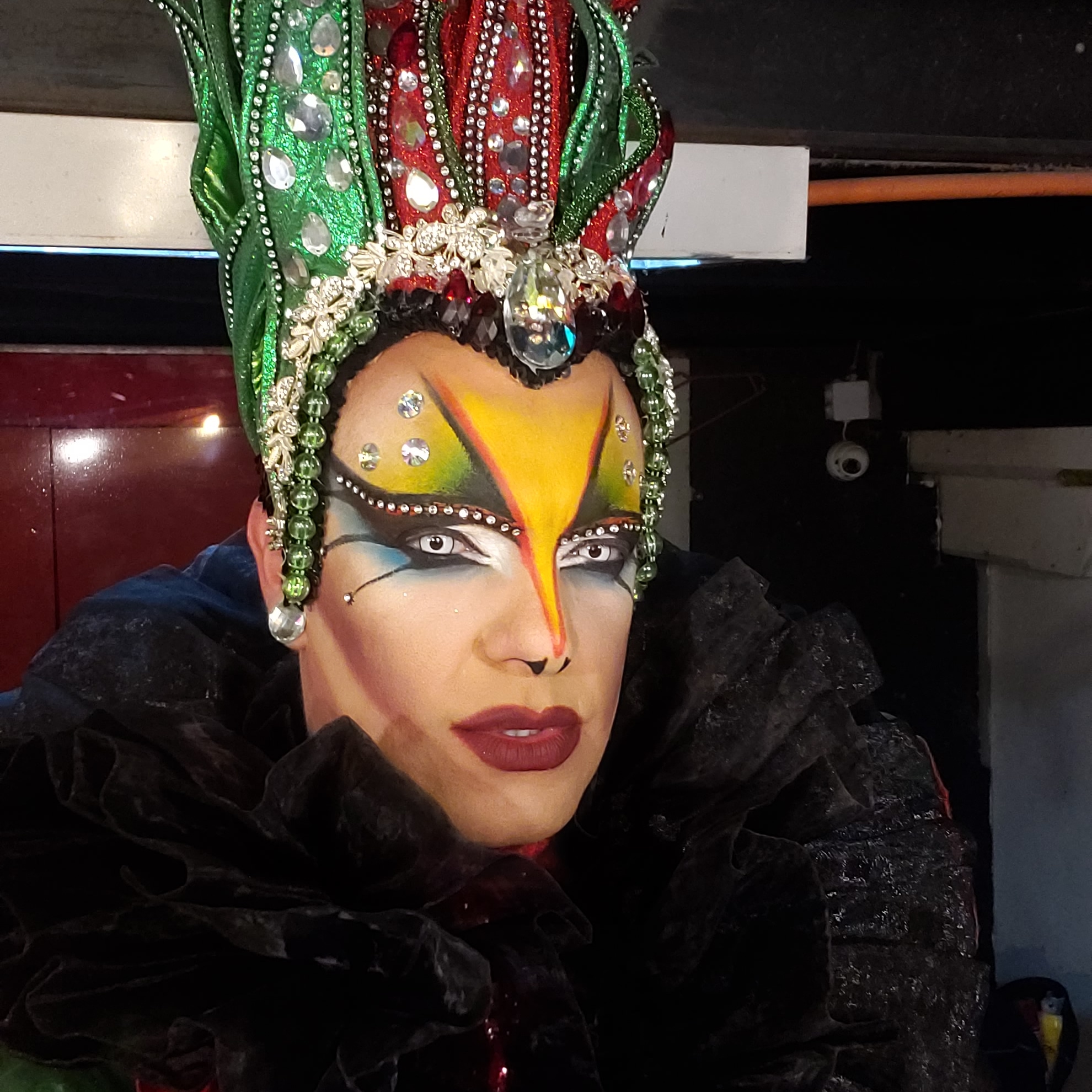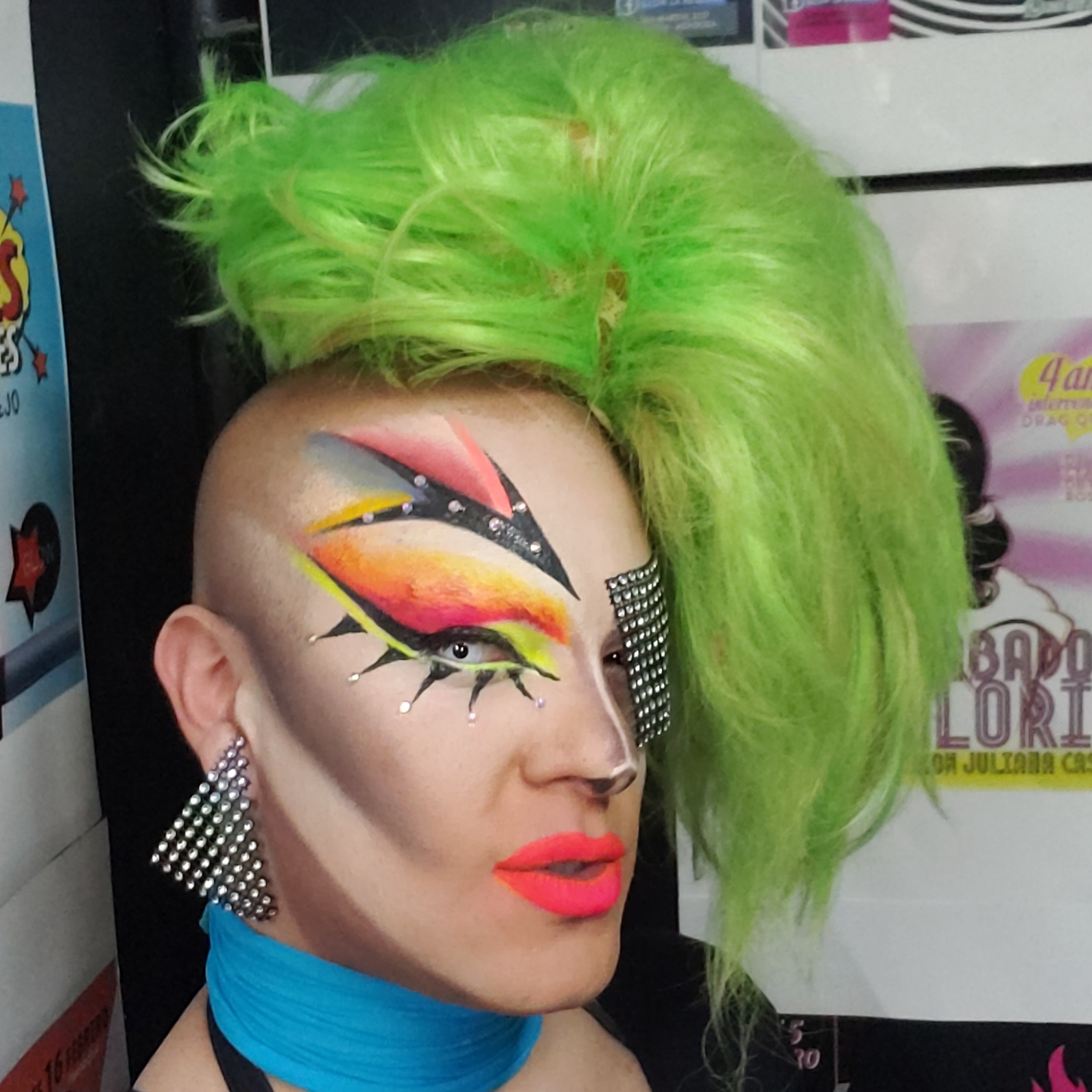 Trato siempre de mutar y de llamar mucho la atención en lo visual. Dibujo los trajes, los diseño, y un amigo drag los cose. No he podido hacer un curso de costura para hacerme yo la ropa, quizá por estar en el supermercadito no tengo el tiempo suficiente como para aprender y después coser.