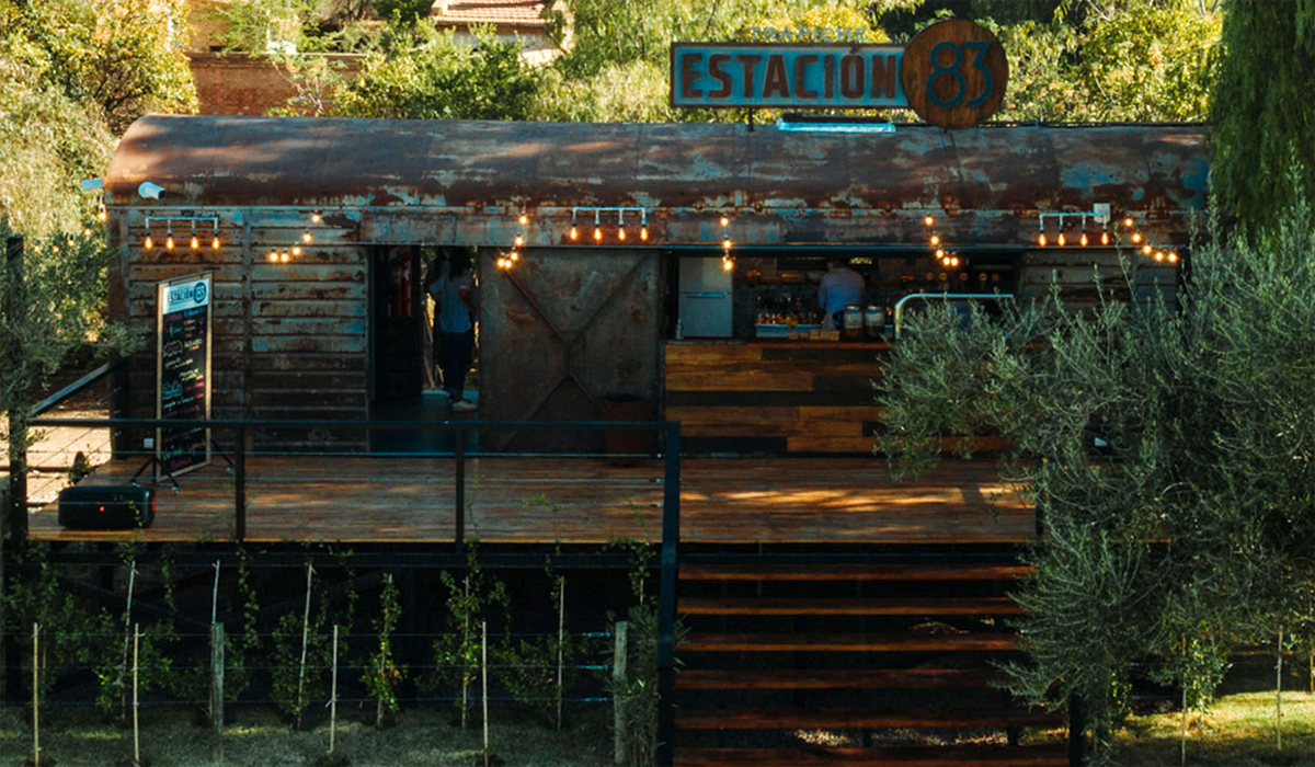 Trapiche: En sus jardines con olivares se creó el espacio Estación 83, un bar de vino tirado realizado en un vagón antiguo restaurado. Una amplia selección de etiquetas se unen a la propuesta gastronómica estilo street-food. Se trata de una experiencia descontracturada, al aire libre, en la calle Nueva Mayorga s/n°, de Maipú.