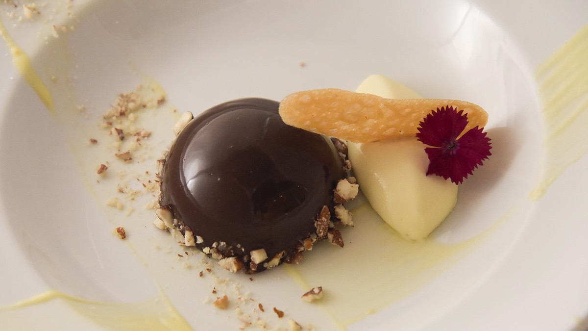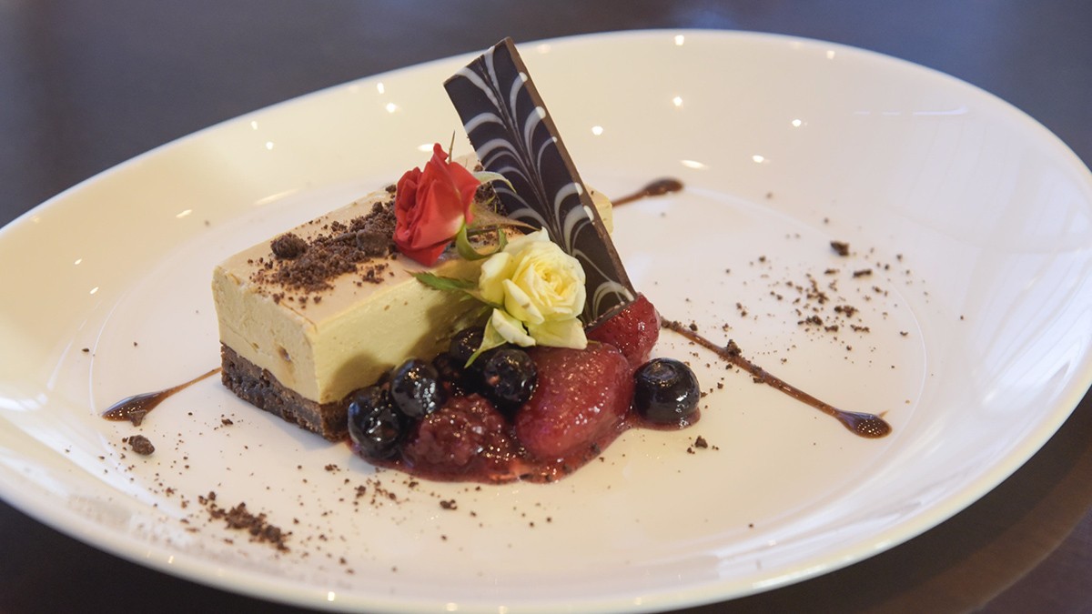 Los postres, una reversión de los clásicos, son seductores: flan de coco con mousse de dulce de leche, marquise de chocolate blanco y frutillas con pimienta negra, lasagna de manzanas tibias con nueces, azúcar negra y chocolate, pavlova con crema de coco, frutas de estación y coulis de frutillas, cheesecake de dulce de leche sobre base de marquise hecha con harina de algarroba y domo de chocolate con corazón de naranjas especiadas.