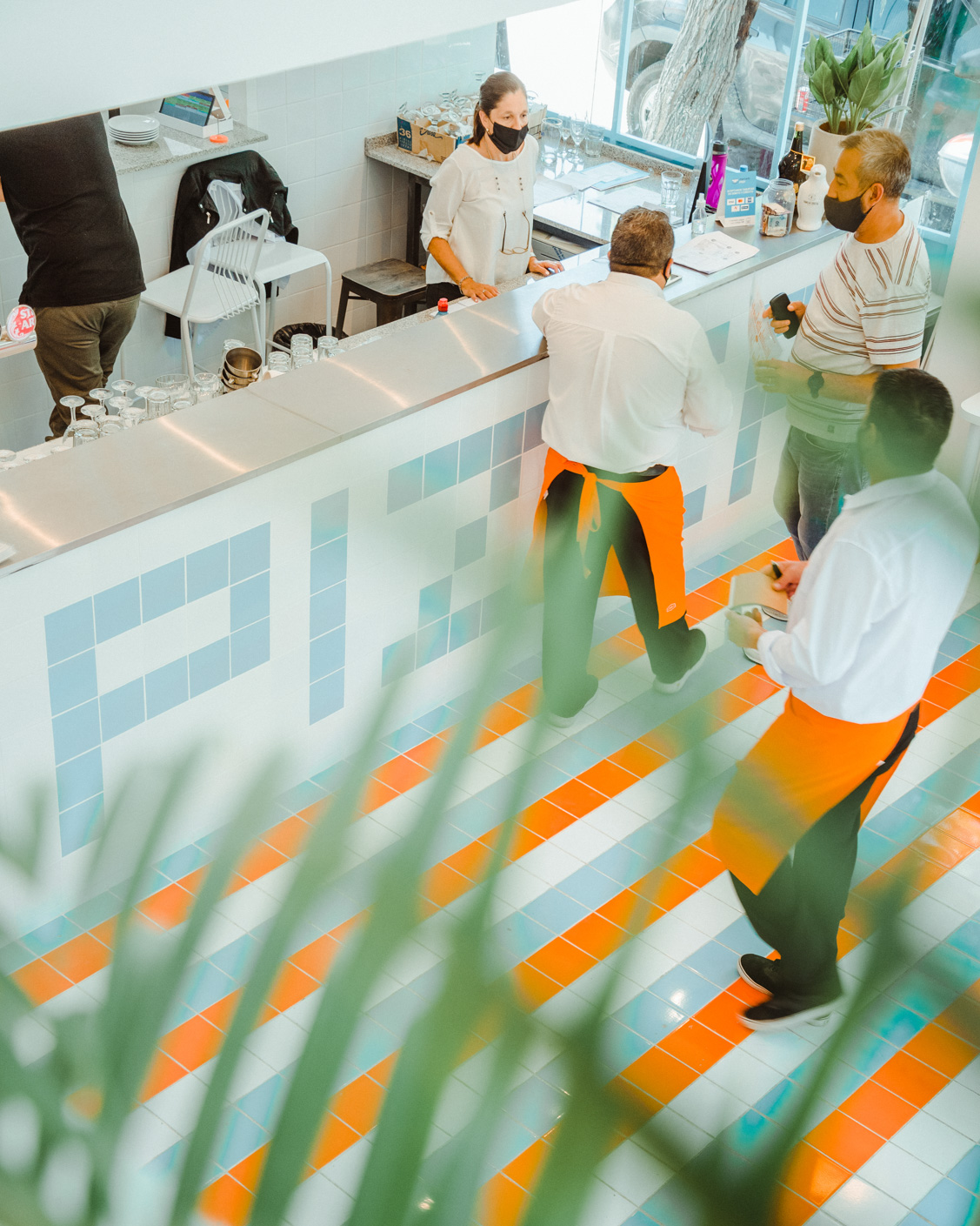 La original ambientación vintage de los años 70 que el estudio Ailoviu eligió para la pizzería, termina de transportarnos al típico club de barrio, con mobiliario retro y elementos de una cancha de básquet en el salón del primer piso.