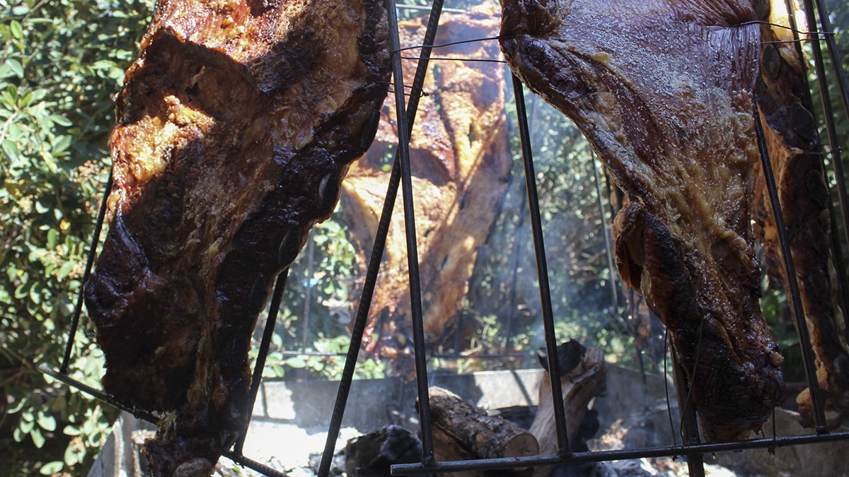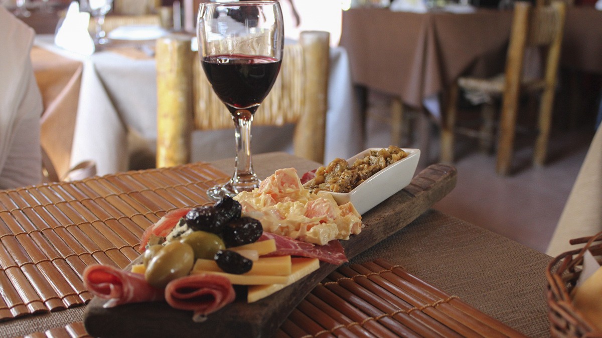 La entrada es una tabla de fiambres para compartir más una empanada de carne por persona; el plato principal, que puede ser costillar a la llama, pollo relleno o deshuesado a la parrilla con salsa de queso azul, pastas caseras o matambre de cerdo con miel y mostaza, con papas rústicas o ensalada; más el postre.