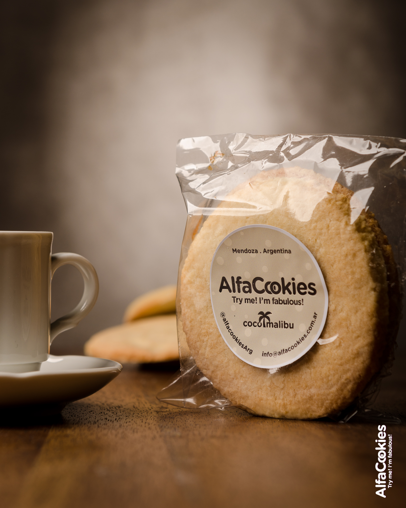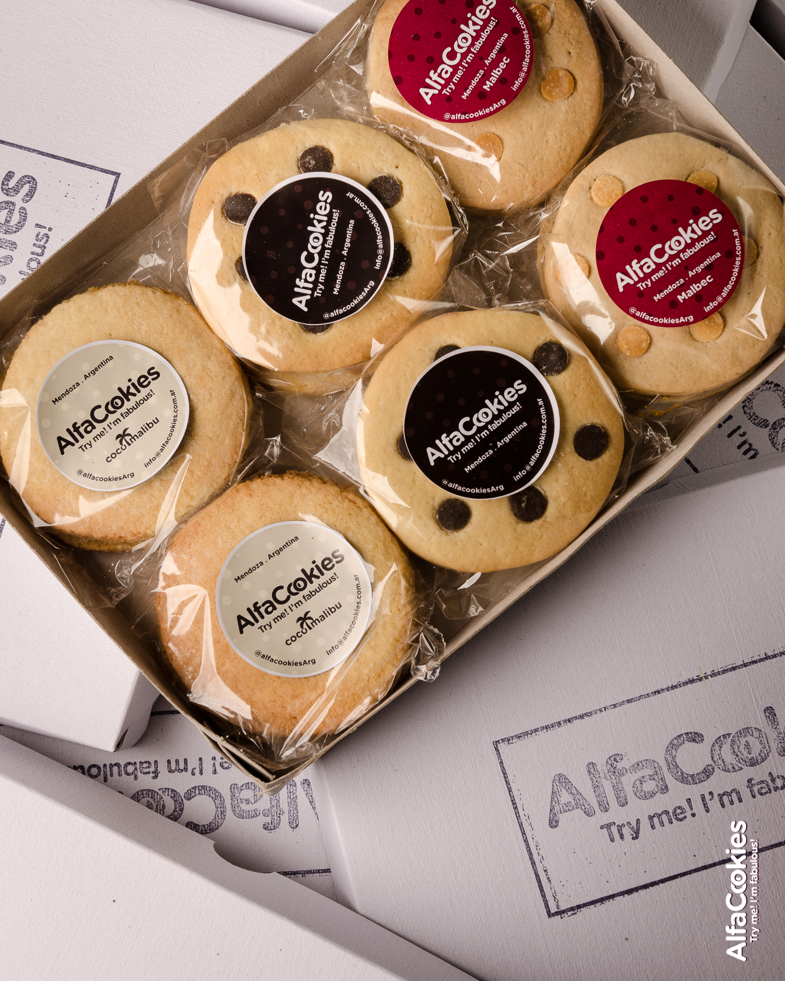 Sabor Coco-Malibú: Federico Urquiza vivió dos años fuera de Argentina. Sus primeros pasos en la cocina los vivió a temprana edad, pero esos años de viaje fueron claves para darse cuenta que la gastronomía era lo suyo. Instalado nuevamente en Mendoza, comenzó a hacer «viandas para empresas, catering, iba a cocinar a casas de amigos, etcétera. Pero el año pasado nació Alfacookies, dos tapas de galletita con chips de chocolate rellenas. Una experiencia diferente». Su primer alfacookie fue hecho a la manera clásica: rellena con dulce de leche, pero luego en el afán de incursionar con diferentes sabores nació el de Malbec y luego el de Coco-Malibú, «la tapa está hecha con coco y el malibu se encuentra en el relleno hecho en una salsa con reducción.» Para más info: Alfacookies.
