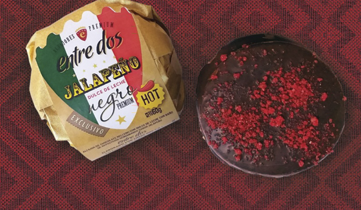 Sabor Jalapeño: la ya reconocida fábrica Entre Dos lanzó a mediados de este año una nueva línea de alfajores en donde «buscamos fusionar sabores y sorprender al paladar de nuestros fans con nuevas sensaciones.» La descripción técnica es un alfajor de chocolate relleno con dulce de leche con topping de Jalapeño. El picante se encuentra en el topping, sobre la tapa hecha con cristales de azúcar saborizado con ají jalapeño. «En el primer bocado, se puede percibir el picante del producto que al fusionarse con el dulce de leche y el chocolate, devuelven una sensación de picor muy sútil y elegante.» Por el momento el Entre Dos Jalapeño es un sabor exclusivo de los puntos de venta oficiales: en Blanco Encalada (Luján de Cuyo), Estación Torreón (Maipú), Espacio Urbano San Lorenzo (Ciudad, Mendoza), Sweet Truck (Mendoza Plaza Shopping) y en la tienda ubicada en la Terminal de ómnibus. Facebook Entre Dos