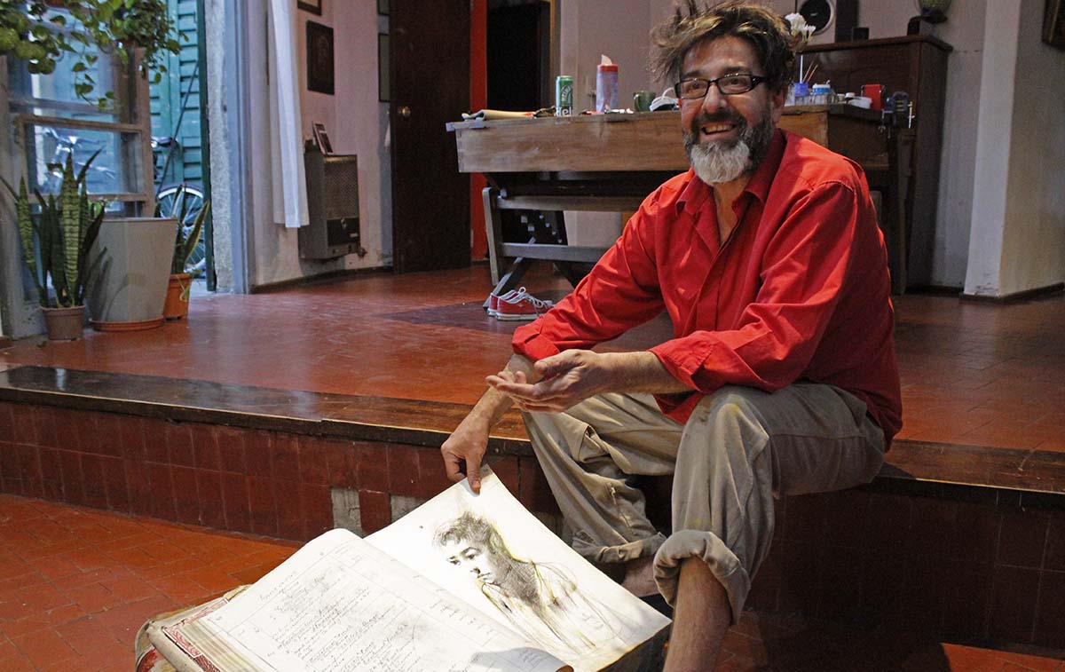Es un proyecto que desarrolla sin prisa y sin pausa. En 2001 los libracos fueron descartados por la bodega y él junto a otros artistas los tomaron para usar sus hojas. «Son obras que voy haciendo, hay bocetos que luego desarrollo en el lienzo, retratos, intervenciones de amigos que vienen a verme», dice y anticipa que se los dejará a sus tres hijos.