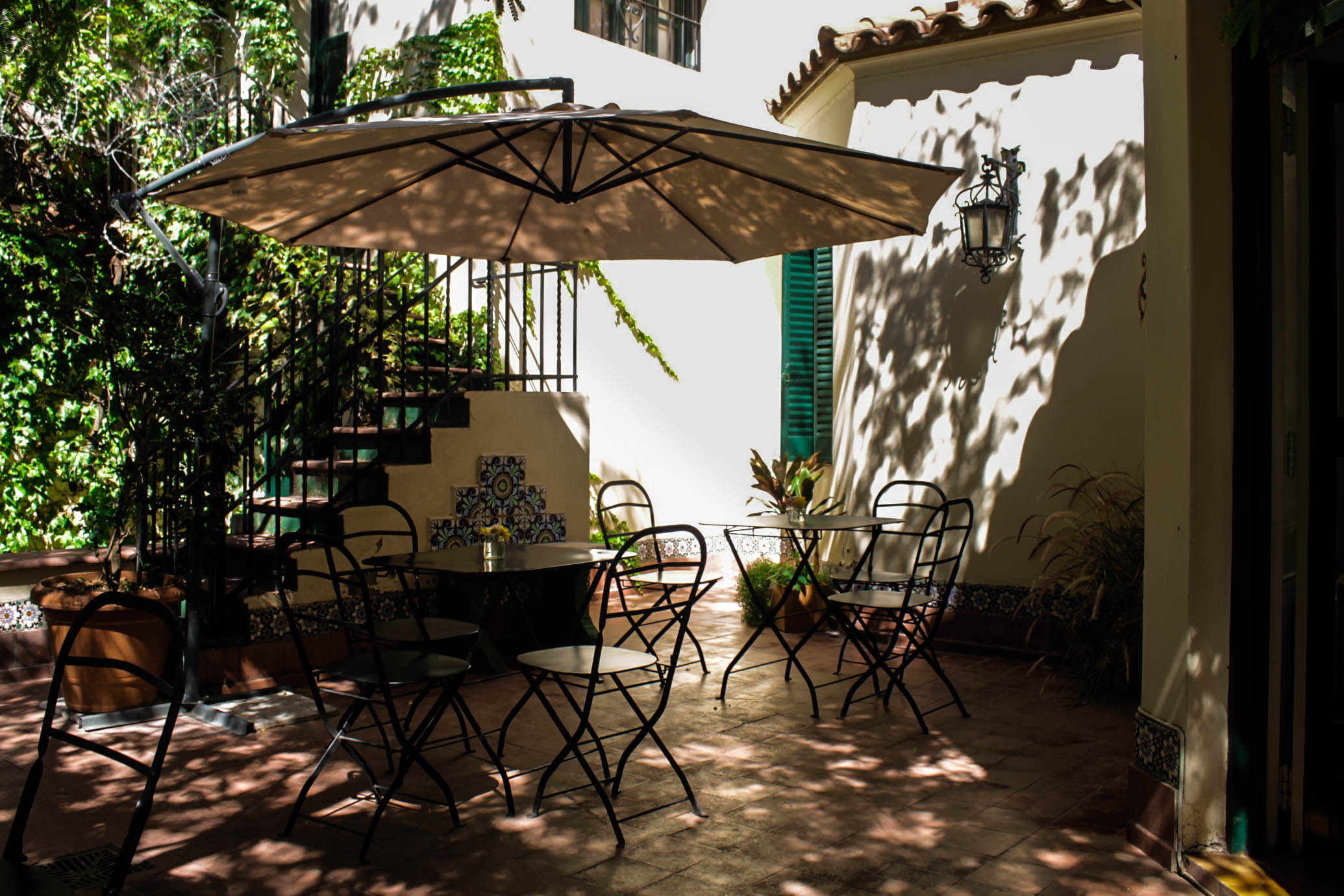 El recorrido comercial desemboca en un café-restaurante que cuenta con un patio de estilo español decorado con coloridas mayólicas originales y lleno de detalles mágicos para descubrir, pero también se puede optar por el jardín, un espacio rodeado de verde, ideal para descansar de la ciudad. Como plus se puede disfrutar de las obras de María Bueno, las cuales se encuentran por toda la casa y forman parte de la muestra permanente de Patio Lorenza.