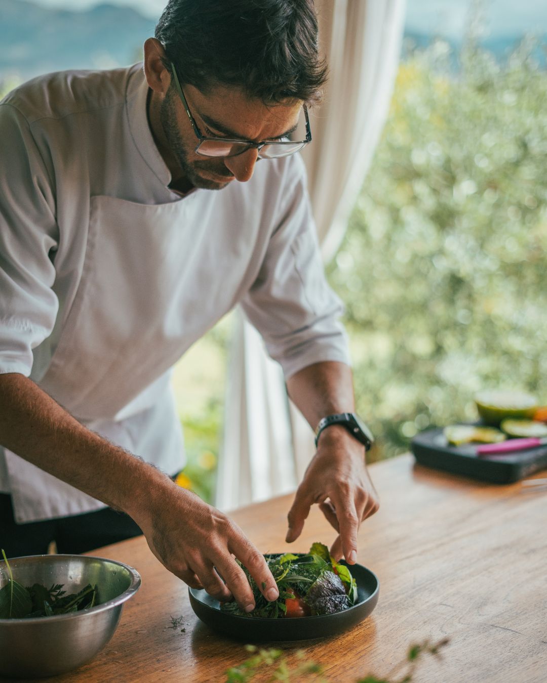Ventureyra es el chef de Riccitelli Bistró, reconocido por la guía Michelin con una estrella roja y otra verde, por el enfoque sustentable y el aprovechamiento total de todos los frutos que da el suelo donde está emplazado. De hecho, la finca fue estudiada por biólogos durante las 4 estaciones del año para recolectar datos y saber que cuentan con 16 variedades de vegetales silvestres comestibles (más lo plantado por ellos) y 12 variedades de frutales. “Metí el conocimiento dentro de la cocina”, expresa con orgullo.