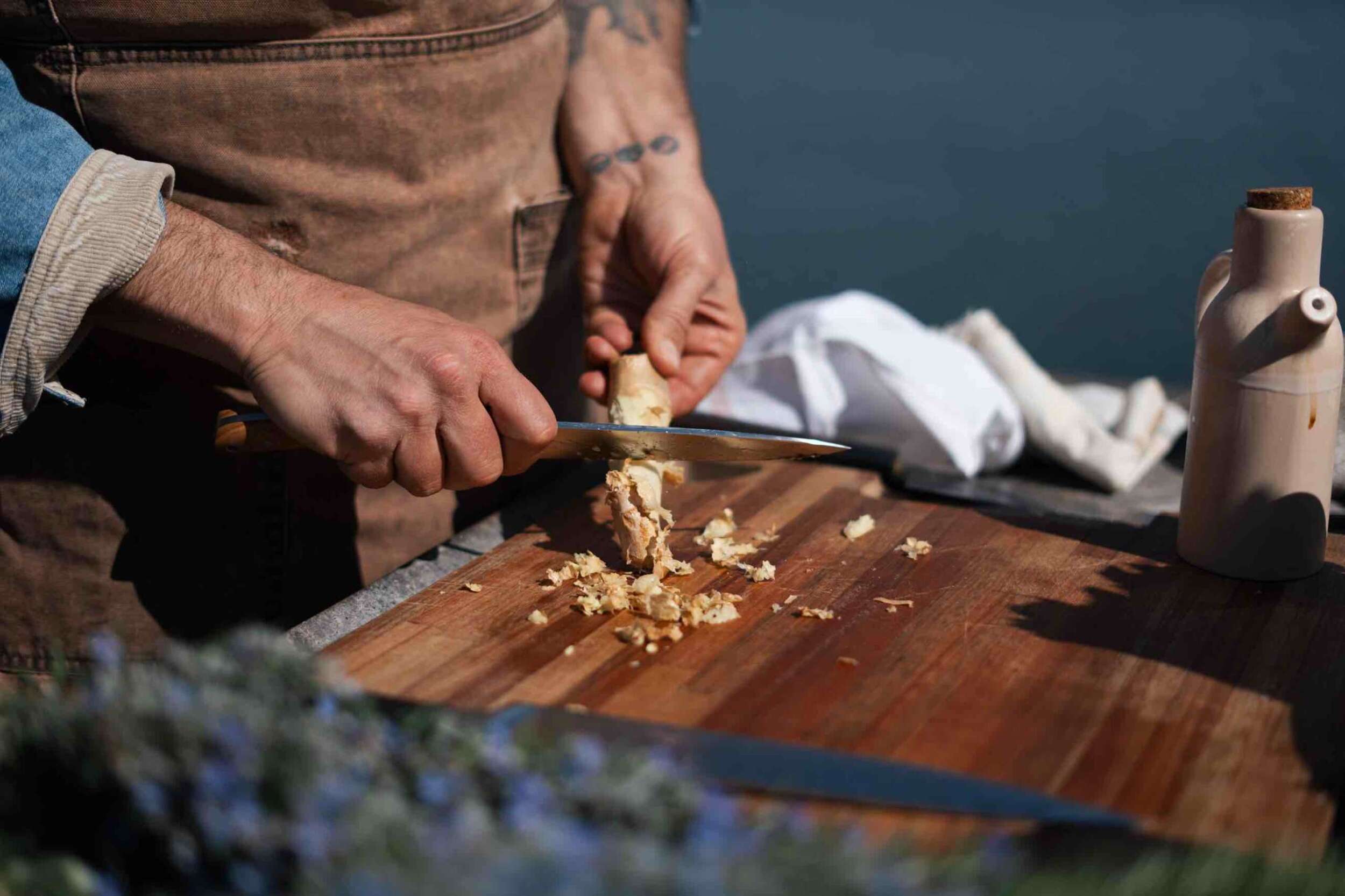 • Jengibre encurtido (tipo gari): Pelar el jengibre fresco y cortar en finas láminas. Preparar una solución llevando a hervor el agua, vinagre de manzana, azúcar y 50 grs. de sal fina. Incorporar el jengibre y cocinar 2 minutos.