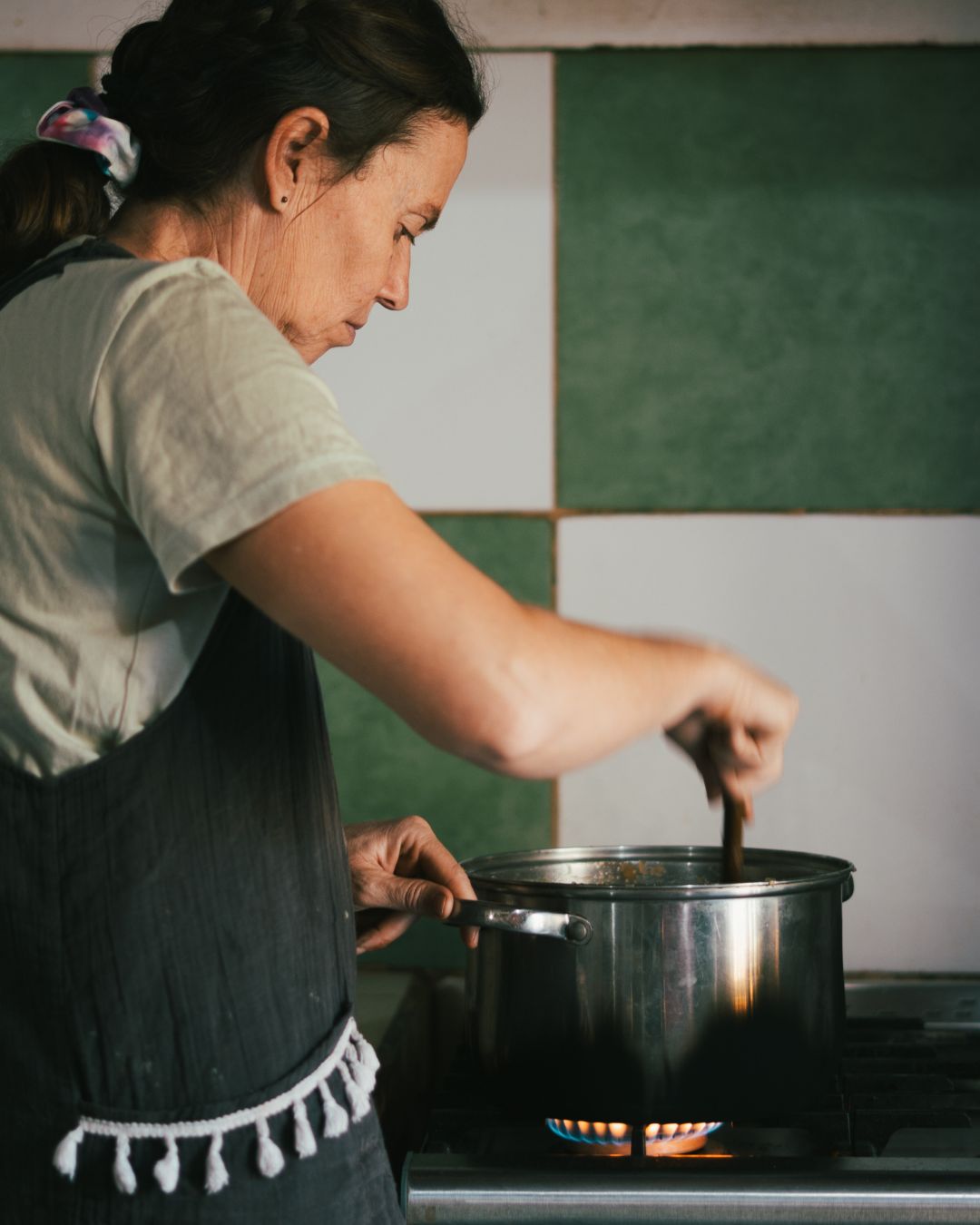 El nombre Cosmos no es casual, nace de una flor y de una filosofía que ella adoptó como forma de vida. Ese espíritu se percibe en cada rincón de la finca, un paisaje vivo que invita a recorrer senderos y conectar con lo esencial. Allí conviven frutales, huertas, animales y una diversidad de producciones que van desde conservas, jugos y mermeladas hasta cosmética natural, fitoterapia y vinos orgánicos. Una dinámica que implica trabajo constante durante todo el año y una relación directa con cada etapa del proceso.