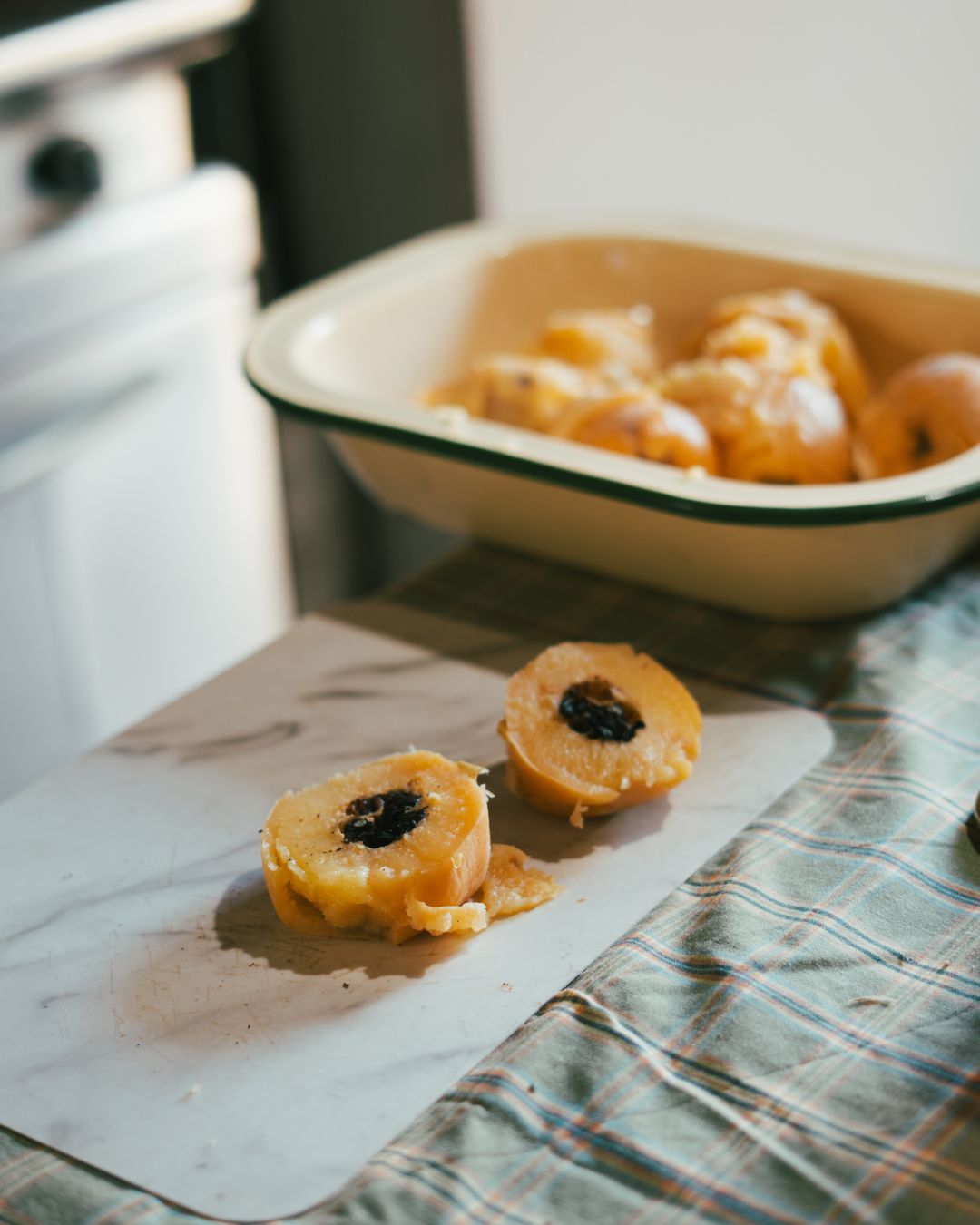 “Lo ideal es que los membrillos no se pasen de cocción para que no queden aguachentos. El cocinarlos enteros es un tip para que el pan salga rubio y no tan oscuro”.