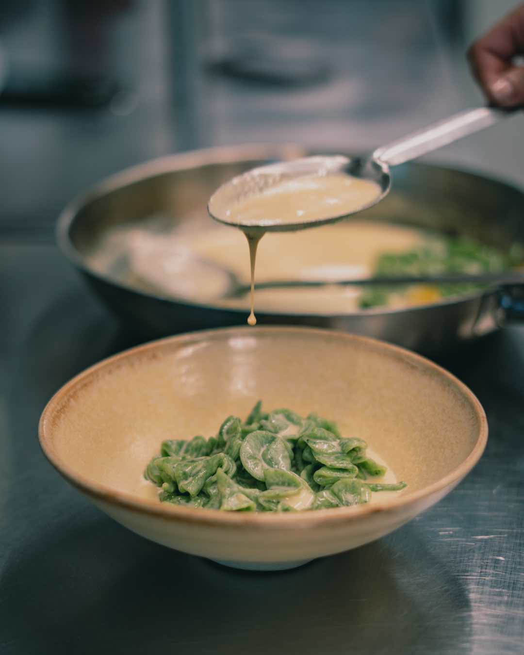 Es una propuesta que habla de equilibrio: delicada pero sabrosa, simple pero sofisticada, perfecta para compartir en una mesa donde los sabores de temporada son los protagonistas. “La pasta verde y el estragón son un clásico de la cocina de mi mamá, todas mis recetas están basadas en la cocina familiar y en recuerdos de mi infancia, reversionadas a la cocina de hoy”.