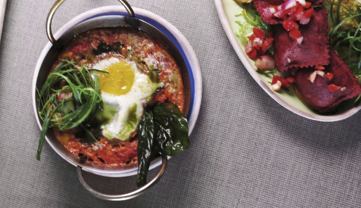 Tomaticán: A los tomates salteados con ajo, cebolla, aceite de oliva, albahaca y aceitunas se los termina de cocinar en una paila y un huevo estrellado arriba. No hay mejor combinación que la del salteado con la yema. Se sirve en la mesa con un tostón de focaccia casera o pan para celíacos.