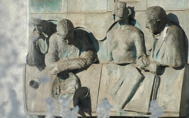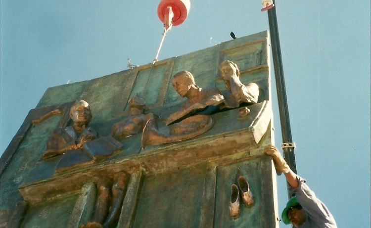 To make the gypsum and polystyrene models, cut the parts, disassemble and then assemble the mural foundries without welding them-, the three artists challenged the chauvinist prejudices of the time and rented a warehouse in Godoy Cruz, where they worked hardly for just over six months. On May 25th, 1995, was inaugurated the sculptural frieze which is celebrating 20 years and which is called: Freedom, that anonymous heroic deed. It consists of three large pieces of bronze, two large murals with figures in high relief and a great central volume. The brothers Juan Pedro and Antonio Valdivieso and the company Elijah E. Olivera & sons, were also involved in the melting.