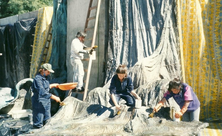 «My dad was a founder and Eliana invited me to participate in the project since my father advised us technically. We made three proposals; what we see consists of two murals on the sides of a central sculpture representing a large panel falling in a cascade way, simulating a flag that is lost in the water» she explains.