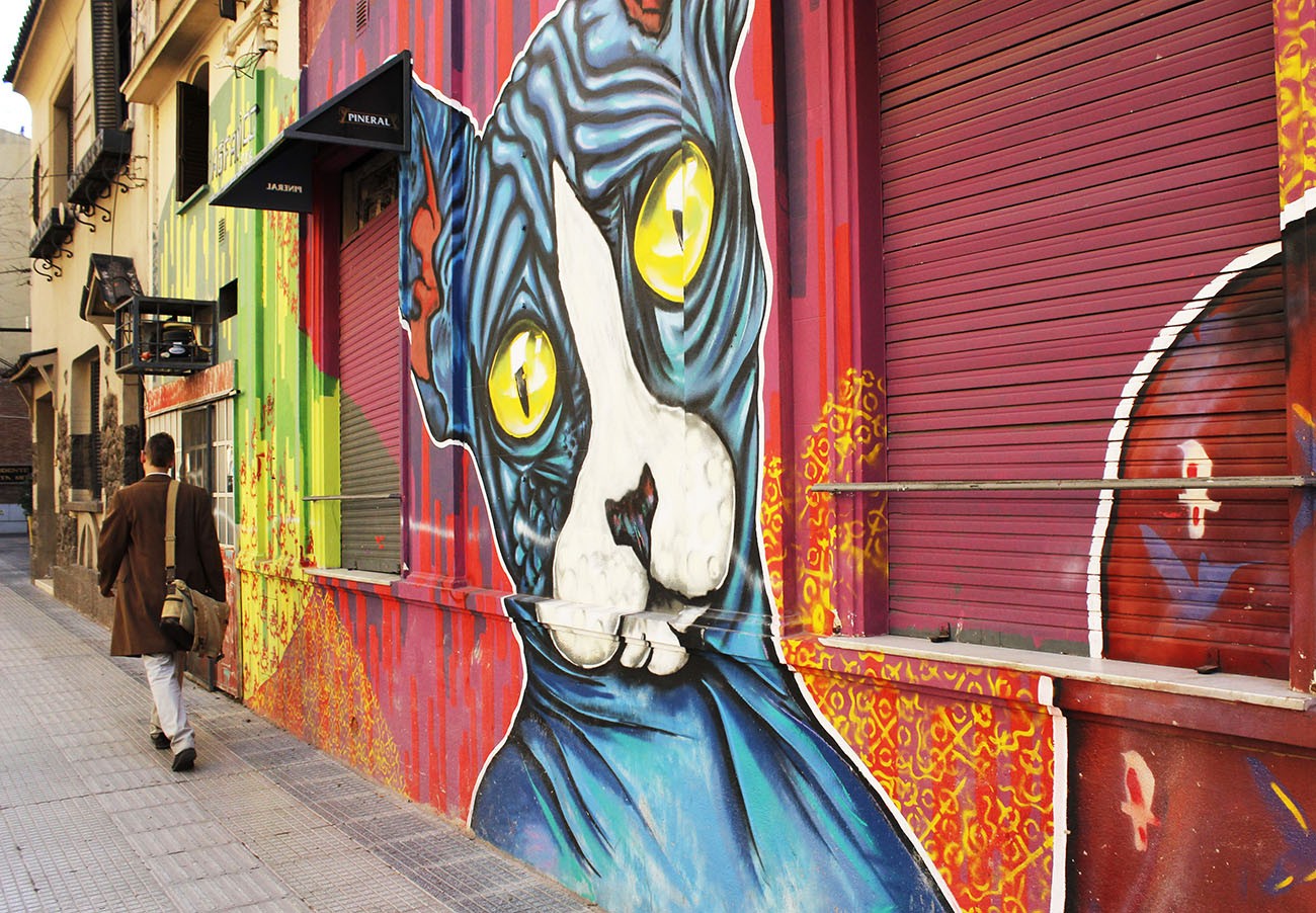Las paredes que abracan la esquina en ambas direcciones han sido intervenidas por el grupo de arte urbano Asfáltico. Sus colores e imponentes figuras zoológicas atrapan la atención. Un perro, una iguana y un zorro vigilan el paso a toda hora, resultan llamativos, curiosos y cualquier encuadre fotográfico servirá de postal de viaje.