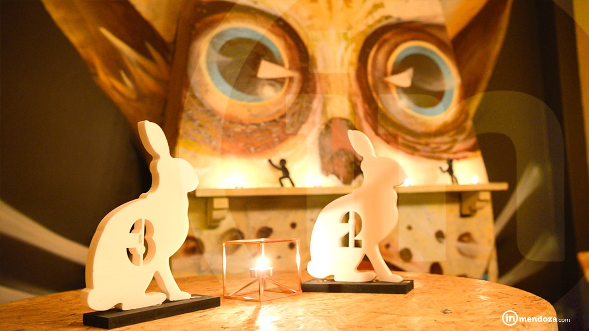 La dinámica del lugar es la siguiente: para ir al bar tenés que enviar un mensaje al (261) 525-8034, esperar la respuesta con la dirección y luego dirigirte a ella. Una vez en el lugar, tocás el timbre y descifrás una palabra clave para que se abra la puerta hacia «el otro lado», en el que una pintura de un conejo y un colibrí te dan la bienvenida.