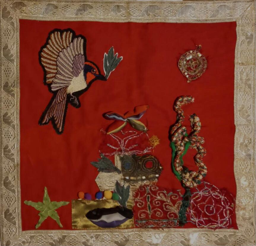 En sus lienzos vemos costuras uniendo telas, «eso significa para mí recrear esa línea delgada entre lo real e irreal, sintiendo la obra muy propia e íntima», confiesa.