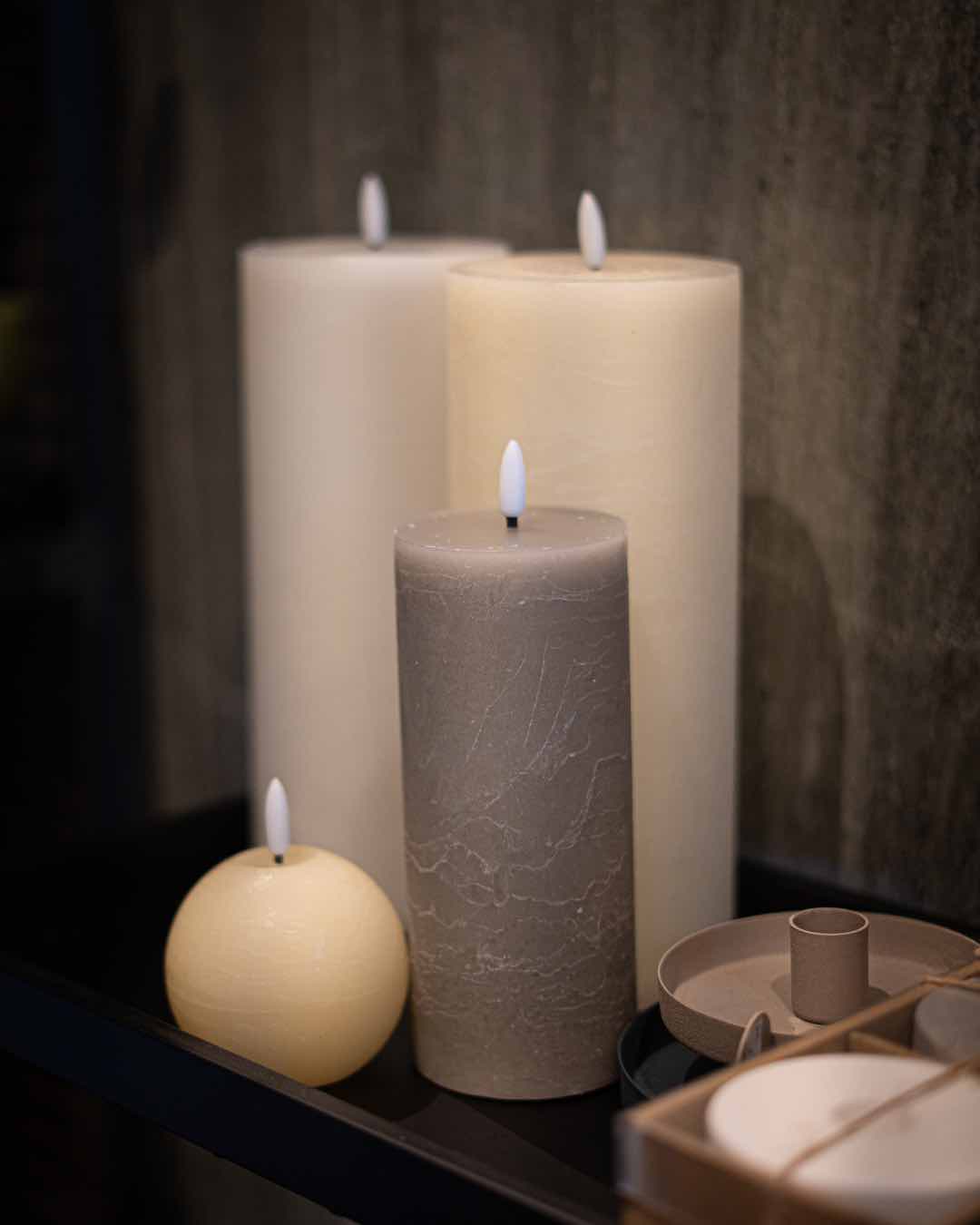 Otra opción para disfrutar de esta estilo y decorar espacios pequeños donde el fuego puede ser un inconveniente, son las velas led, de varios tamaños y colores que se ajustan al gusto de cada uno.