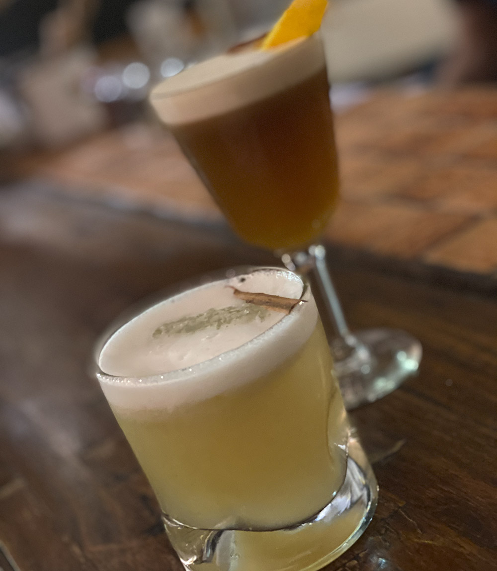 Ingredientes: Bourbon y manzana verde, jugo de limón, almíbar, manzana verde macerada, clara y canela.