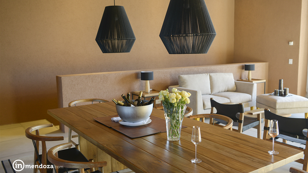 En los espacios se busca la rusticidad, pero con un toque de modernidad. Por eso la presencia de materiales nobles que forman parte del lugar, como por ejemplo la piedra, la madera, que nos cuentan una historia y llevan la fuerza de la naturaleza en sus vetas.
