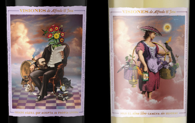 Claro ejemplo con las etiquetas de Visiones, en la que los chicos se ubicaron en la cabeza de Alfredo y Jova, dos extranjeros que vinieron de Italia para construir un nuevo futuro en Argentina, pensaron en los sueños e inseguridades que pudieron haber tenido y lo plasmaron en cada etiqueta «surrealista», la cual presentar un escenario interesante y en el collage está la explicación de por qué es así el vino, en este caso.