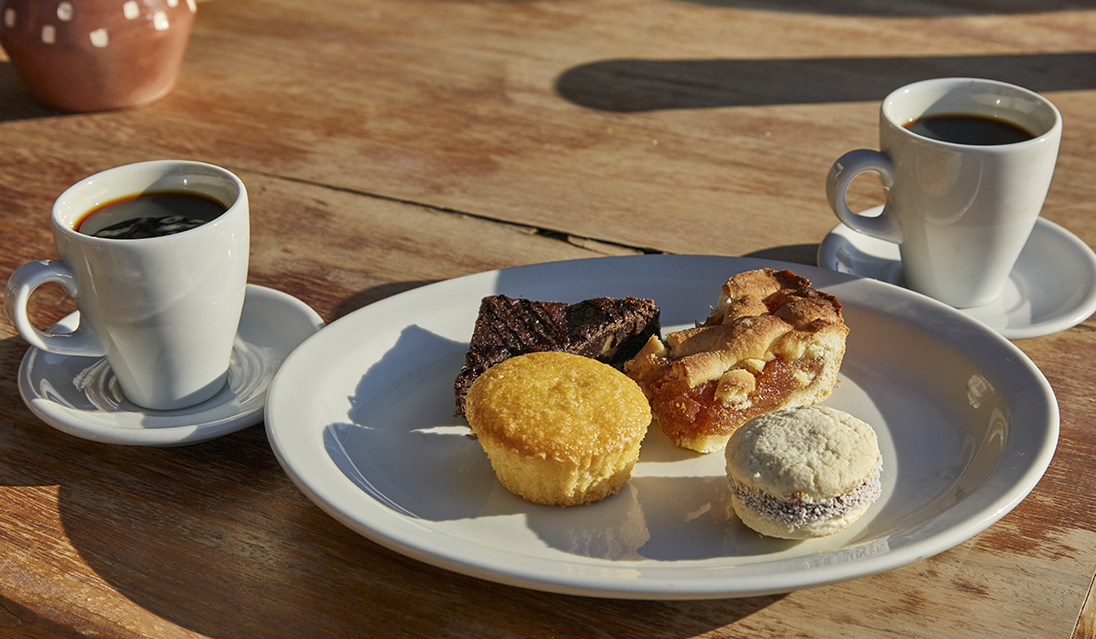 Una incorporación reciente es la opción dulce para la media tarde, es decir, que al café se lo puede acompañar de con delicias de elaboración propia como brownies con nueces, muffins, alfajores de maicena, pasta frola de membrillo, entre otros.
