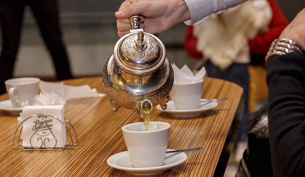 Respecto a las infusiones en hebra, el cliente puede pedir libremente tres de los cinco té diseñados por su Tea Blender. En el menú están el Bute (té verde Gunpowder, cáscara de limón, menta, papaya y flores de crisantemo), romance (té negro ceylon con frutillas y rosas), té del sol (té rojo y negro nacional con naranjas y especias), chai (té ceylón, cardamomo, anís, anís estrellado, clavo, canela y jengibre) y el té de estación.