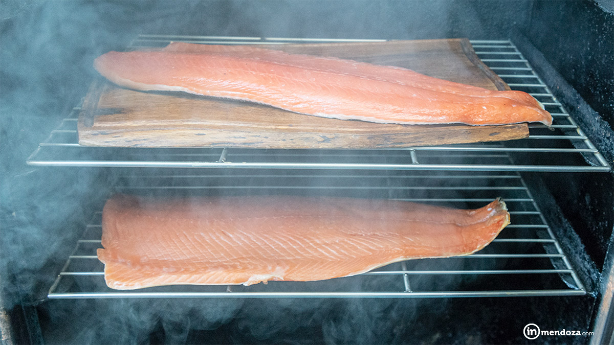 En el caso del salmón, «primero se le hace una salazón para dejarlo curado y convertirlo en charcuterie, un fiambre. Luego se lo lleva al ahumador, donde pasa toda la noche, y ya queda listo con el sabor intenso y tradicional de lo ahumado», cuenta.