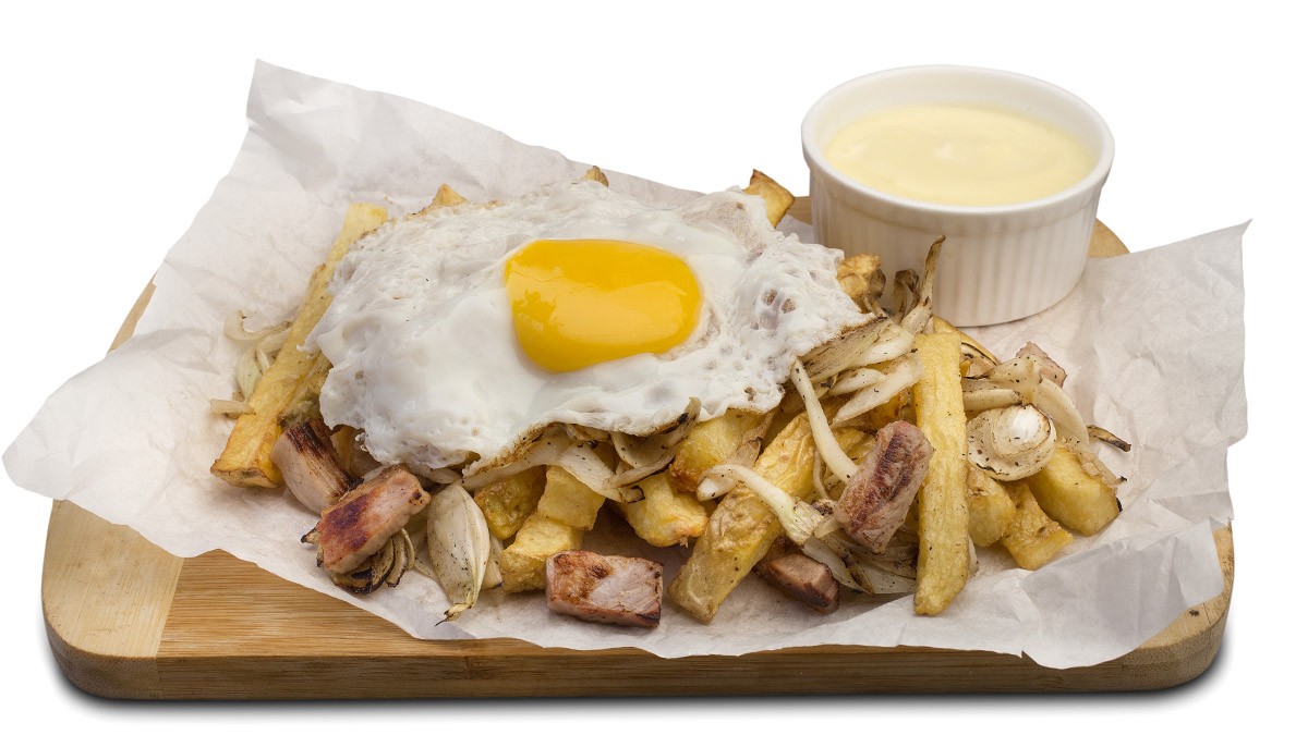 Las papas rústicas pueden ordenarse con una porción de mayonesa casera, es decir, las Papas Tendal; o con cebolla, panceta, huevo y mayo, las llamadas Papas Malón.