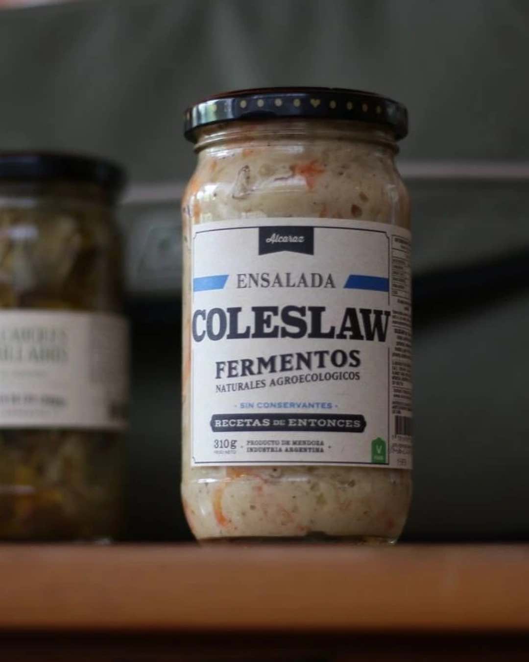 Alcaraz Gourmet propone su reversión en frasco para llevar a donde quieras. Con repollo, zanahoria, cebolla, mayonesa vegana y mostaza. Así la disfrutamos hoy para acompañar carnes rojas, pollo frito, en rellenos de sandwiches, hamburguesas, wraps y en ensalada.